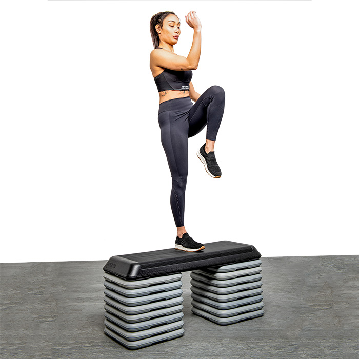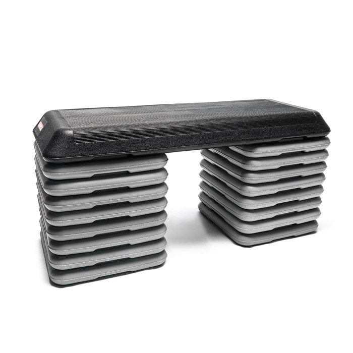 This solution makes the tool particularly useful for all the users who need a fitness step capable of a wide variety of heights. The AeroStep solutions which already include a set of raisers (4 raisers the code 0230, 16 raisers the code 0230/1), are indeed particularly suitable for beginners, seniors, kids and all users who benefit from a more challenging workout thanks to height increases.