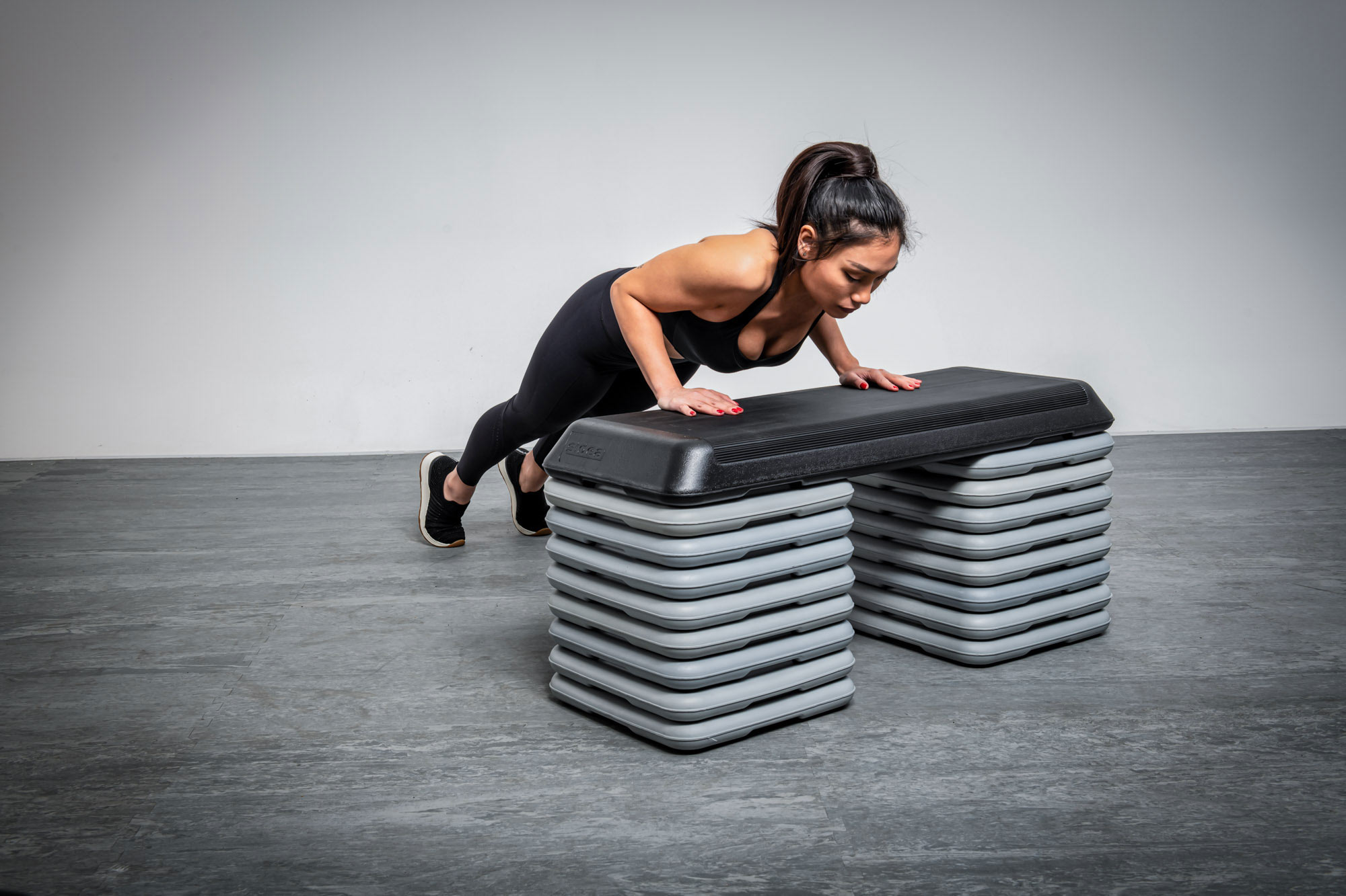Factors affecting exercise intensity are frequency (step speed) and strength (step height): the higher the frequency, the higher the intensity. Similarly, the higher the step, the greater the intensity.