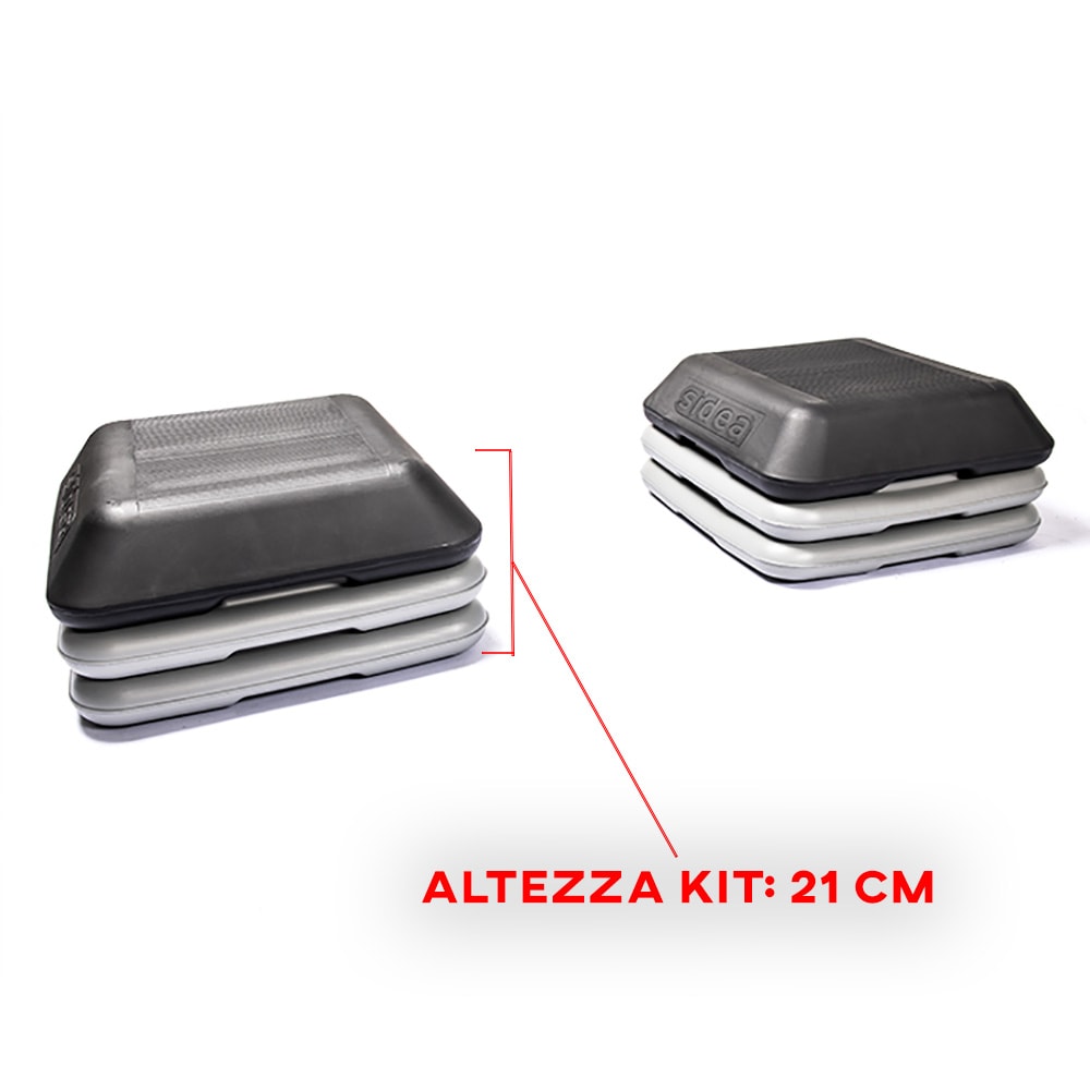 It is possible to add to the Mini AeroStep the Raisers code 0231/1, which can be purchased in pairs. Each raiser allows to increase the height of the step of 5 cm.