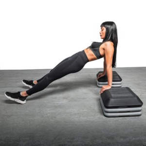 The particularity of this product is given by the independence of the two “step columns”, guaranteeing extreme freedom of positioning, even close together, for a multitude of exercises such as squats with dumbbells, step ups, push-ups with deficit, v-sit and many others. In addition to this, the need for a single column makes it possible to halve the AeroStep steps needed for training, thus being optimal for maximizing the space available in home gyms and personal training centres, or having more stations available for customers (even in gyms).