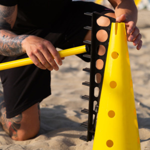 The cones, made with crush-resistant plastic, serve as a target for many training circuits. Both for indoors and outdoors use.