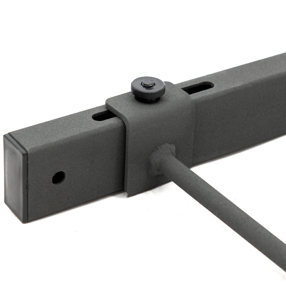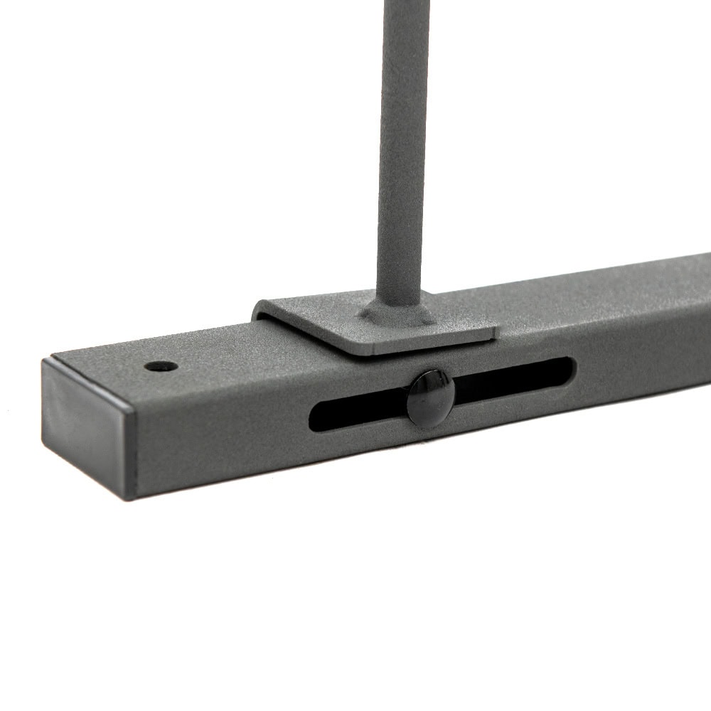 Wall-mounted rack used for hanging mats with eyelets. The frame must be fixed to the wall. The prongs of this rack have a diameter of 12 mm, length of 26 cm. The positioning of the pegs is adjustable to facilitate the insertion of different models of mats. It can hold-up several types of mats (amongst others, also mat codes 0401, 0403, and 0403/1).