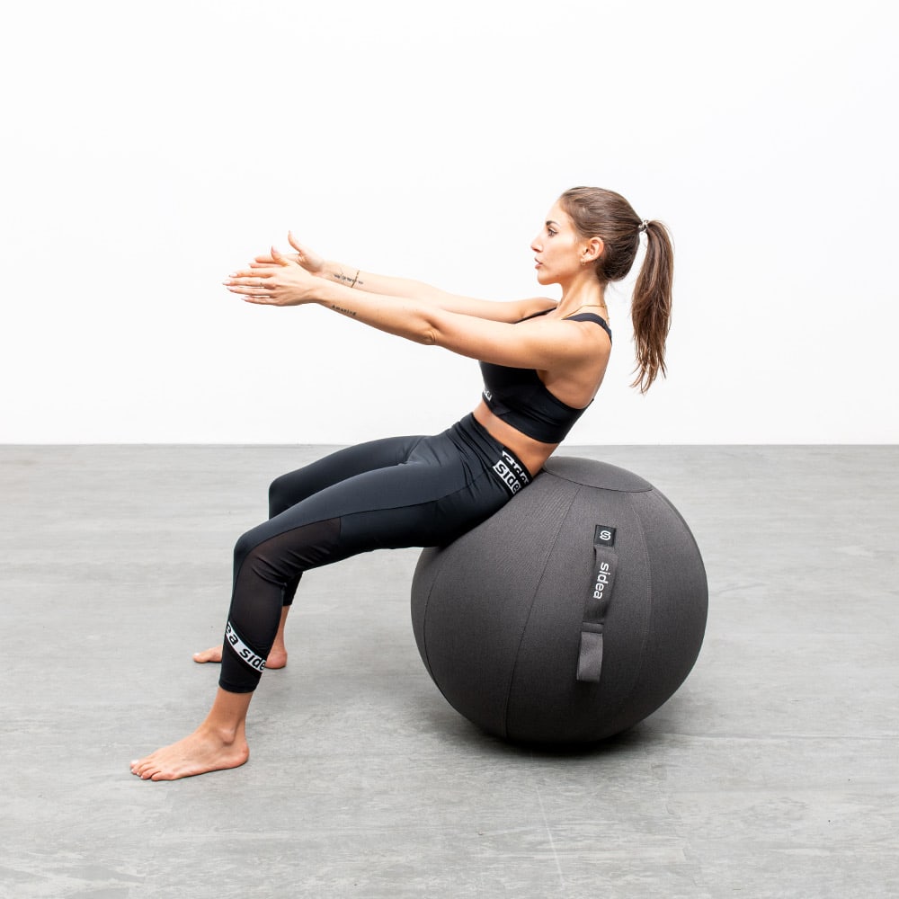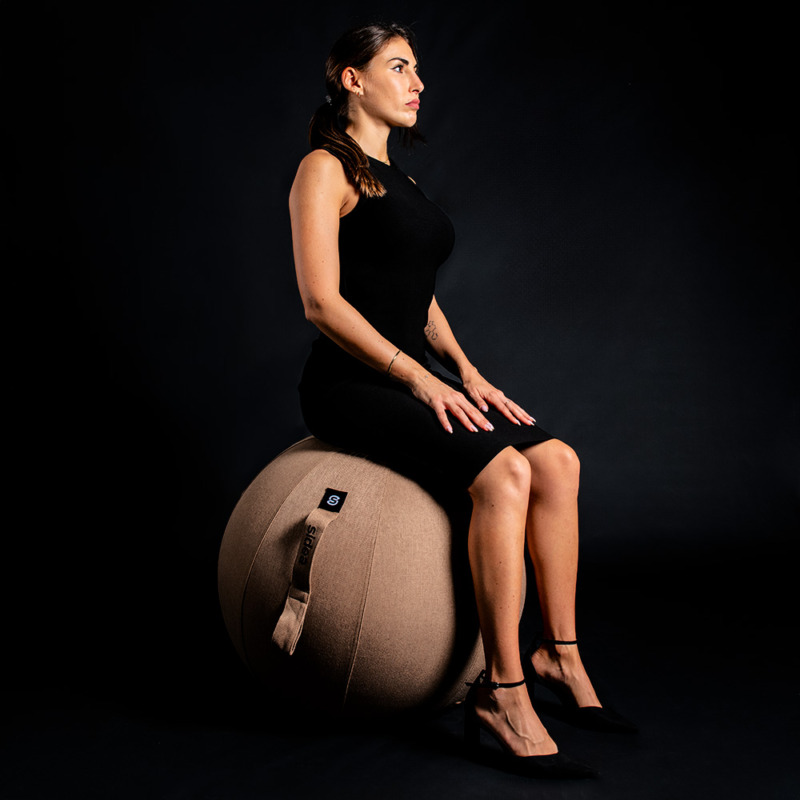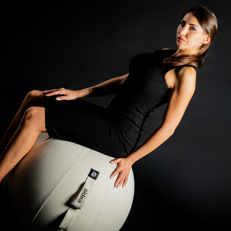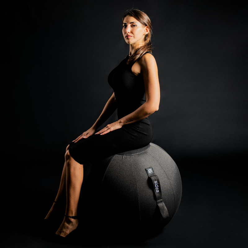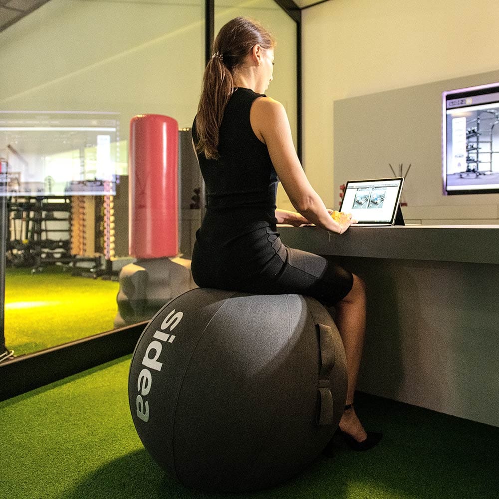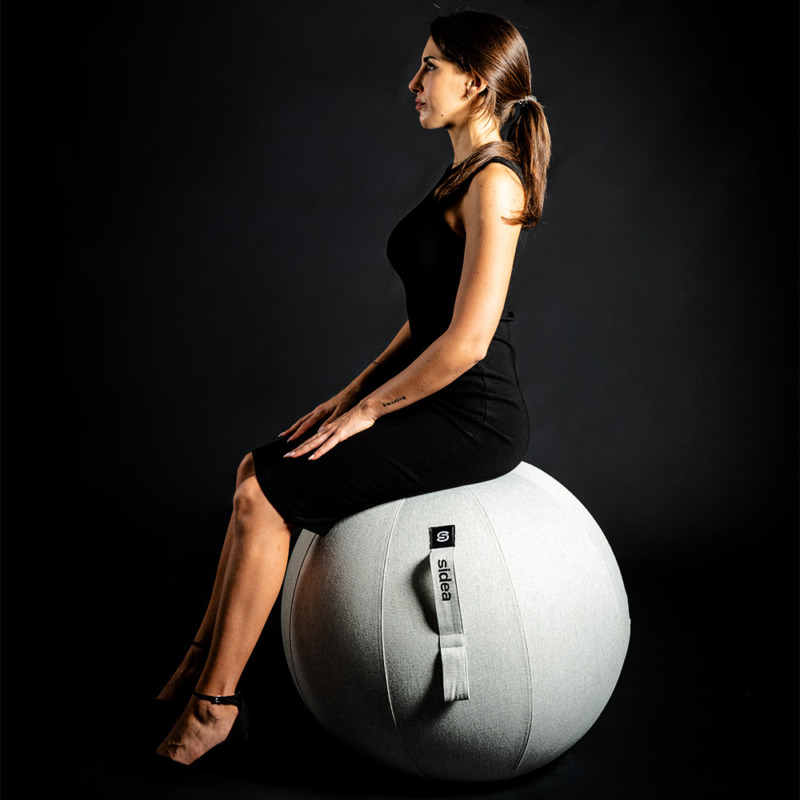 The Active Sitting Ball is also a real piece of equipment, a gym ball, which can be used to perform numerous exercises, starting with so-called office exercises, which are useful to compensate for the closed, forward posture, typical of working at a PC.