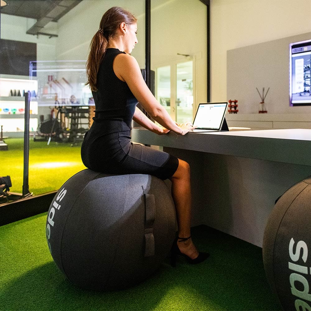 Sitting on a ball is certainly fun and an environment characterised by the presence of active seating intrigues and stimulates customers simply because the propensity to learn and try out motor gestures, from the simplest to the most complex, is innate in human nature. An office, a meeting room, a hotel room, a waiting area, where, instead of normal seating, we find Active Sitting Balls expresses, in terms of design, a precise intention: well-being through movement.