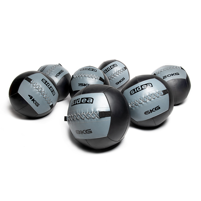 Giant eco-leather medicine balls. Very sturdy yet soft to the touch. They offer a moderate rebound and are specially designed for functional training. Available in a wide range of weight increments, from 4 to 20 kg, their diameter remains the same despite their weight.