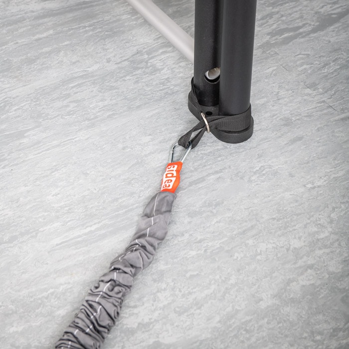 This code identifies only the fastening strap, which is also included in the Big Tubing kits codes 1699 and 1695. It can be purchased separately to have more than one strap. The accessory, 45 cm long and equipped with a half ring, is made of nylon. It is sewed with an internal buttonhole that allows secure fastening through its loop to tubular structures, benches, and many other frames fixed to the wall or floor.
