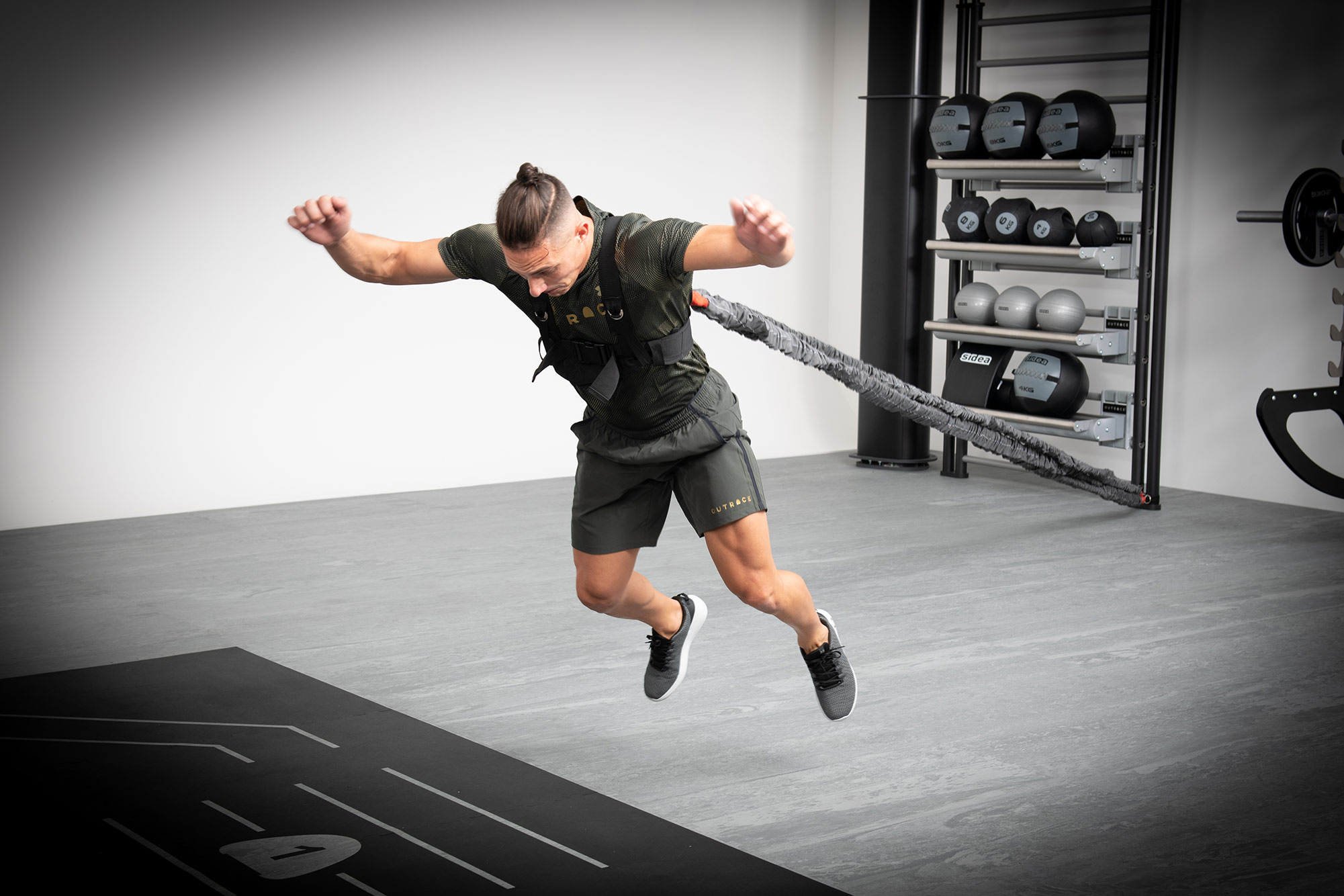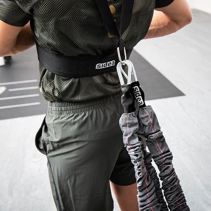 Before carrying out an exercise, it is advisable to assess the maximum extendibility. The maximum extension of the protective outer sleeve indicates that this limit has been reached. The internal elastic could extend beyond 10 m, but for safety reasons, the protective sleeve extends up to about 9 m. Beyond this limit, the protective sleeve is tensioned, informing the user about the limit of movement. Therefore, before starting operation, it is essential to establish the maximum stretching point so that it is not exceeded by tearing the protective sleeve or the snap hook connections. It is advisable, for example, to use cones, pins, or balls as a reference for the athlete by placing them at a distance slightly less than 9 m. Same precaution if only a portion of elastic is used. As for each rubber band, it is necessary to evaluate and not exceed the maximum extension point of the part of the rubber band you are using. Only the athlete can assess this limit based on the size of the elastic used at the moment. If hooked to a fixed point, like a backrest, it is essential to pay the utmost attention to the securing of the ends. The supplied snap hook may prove inappropriate; hence, it is the user’s responsibility to evaluate the most suitable and safe solution. The need for an adequate attachment should not be overlooked in any way. The product can be dangerous, and the user must respect all possible safety precautions resulting from the nature of the tool.