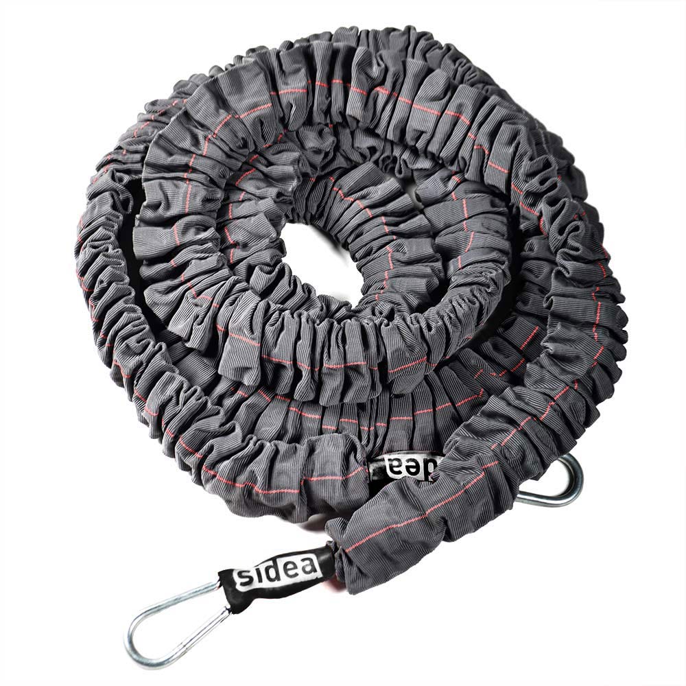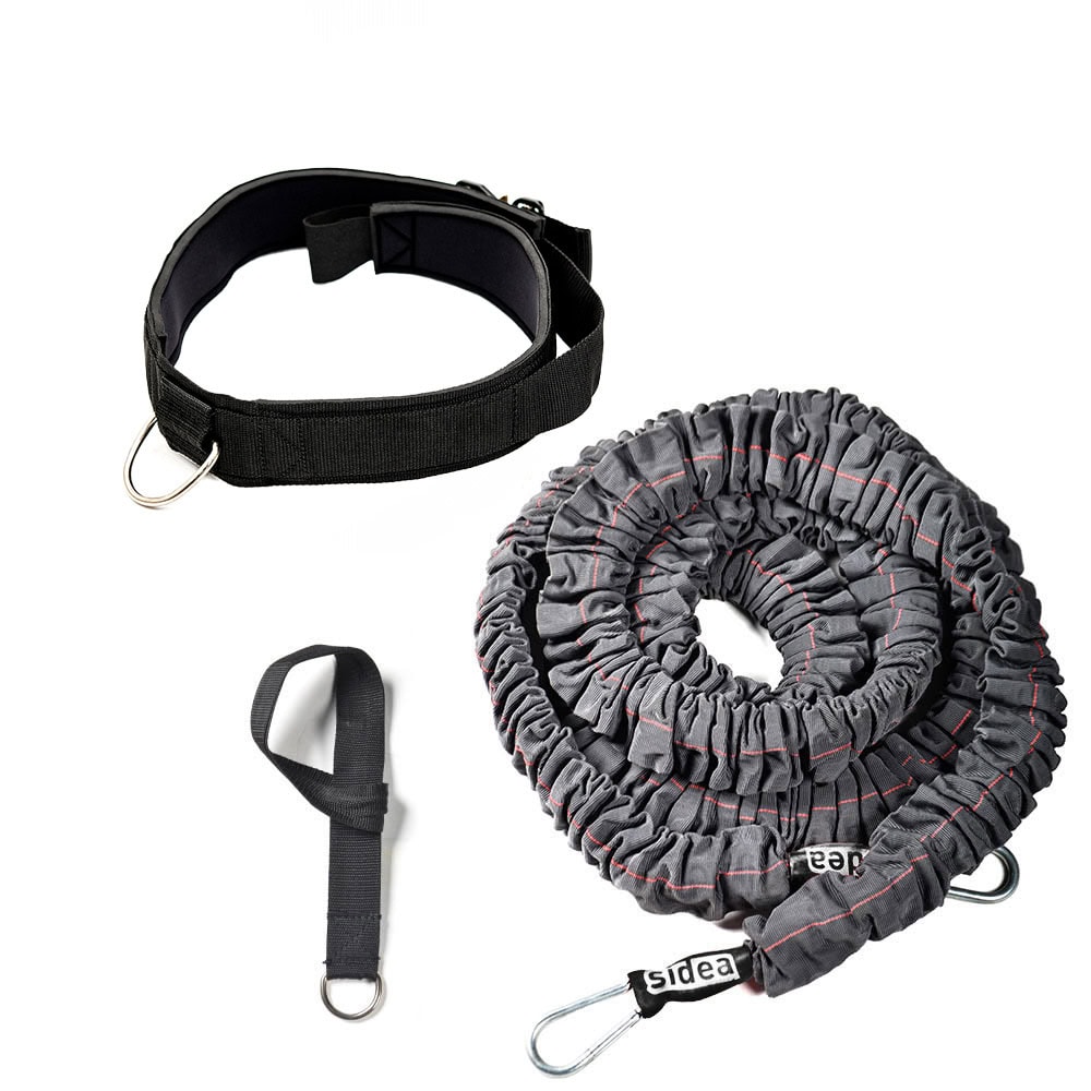 Kit that includes a Power Big Tubing elastic code 1699/1, a Belt with securing ring code 1697 and a Fastening Strap code 1698 , useful to perform exercises for functional training and athletic preparation such as resistance running. Big Tubing is manufactured by combining several tubular elastic bands inside the same protective sleeve, 3.5m long and extendable up to about 9 m, complete with snap hooks and accessories.
