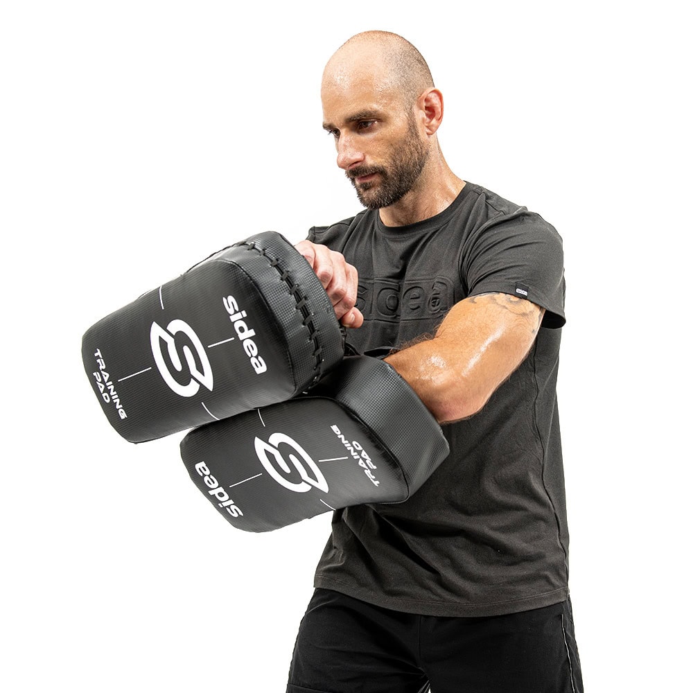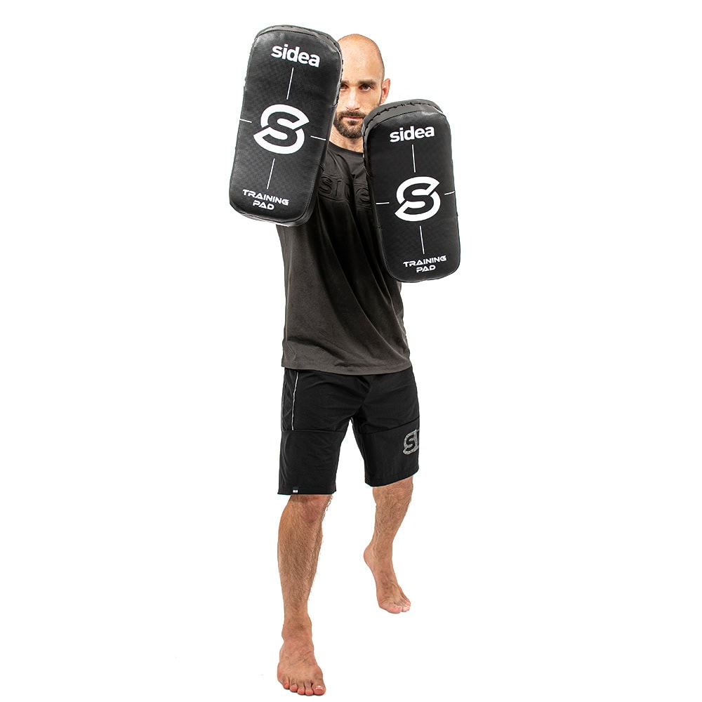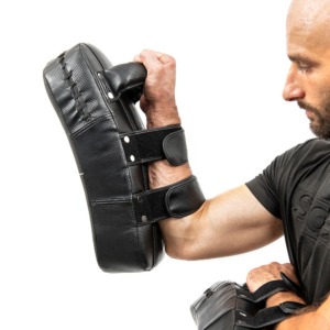 This training pad is finished with sturdy PVC. Tough and ergonomically-designed with a comfortable handle and two grips. The training pad provides adequate cushion and helps the athlete reinforce strength, stability, functionality, and durability. The training pad is the perfect target area to aid athletes in working on specific punch combinations, hooks, uppercuts, jabs, kicks, knee strikes, and body shots.