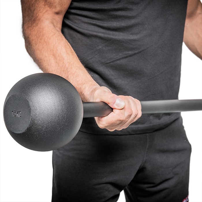 The long handle of the Si-MaceBell emphasizes the decentralization of the grip concerning the mass, generating a high rotational force during the exercises, that manifest on the athlete in a sudden and challenging way. Articular mobility, stability, strength, proprioception, resistance are exceptionally stimulated. The excellent mass-decentralization leads the tool to be more varied from a dynamic point of view.