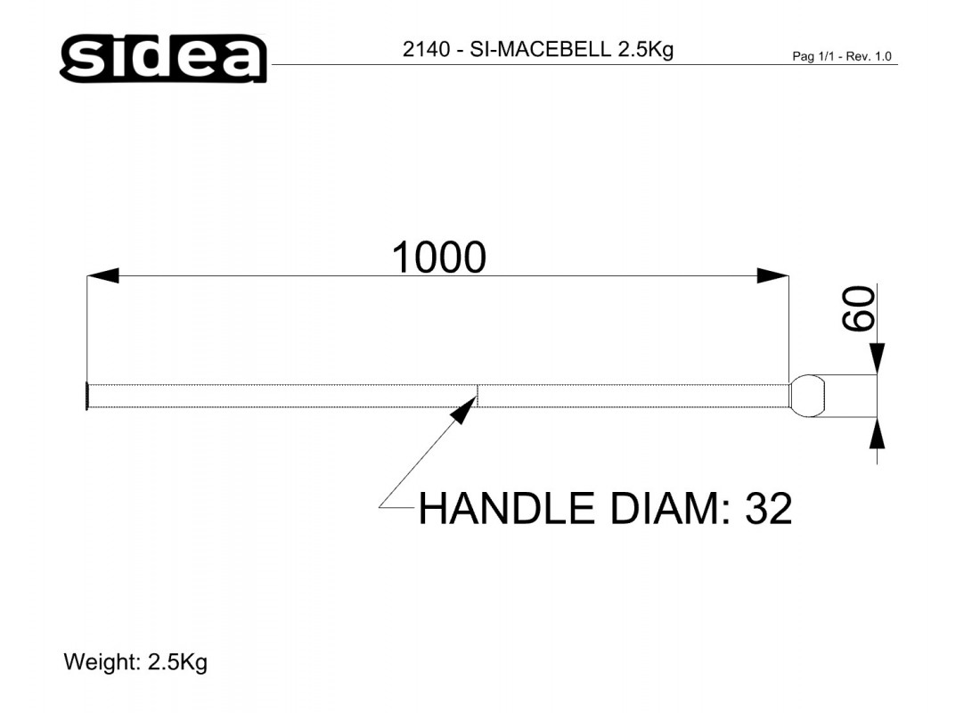 Manufactured according to the specifications indicated by Macebell Italia – Italian Macebell Federation, this series consists of 6 models. Si-Macebell comes with weight increments from 2.5 to 20 kg and standard dimensions that do not vary with the weight. The tool features a 1000 mm handle, 32 mm diameter, with conical end and thick micaceous paint. The tool is finished with a perfectly flat bottom, with the engraved weight. The grip is ensured by the coating, while the absence of knurling allows a practical sliding of the hand on the lever during grip changes.