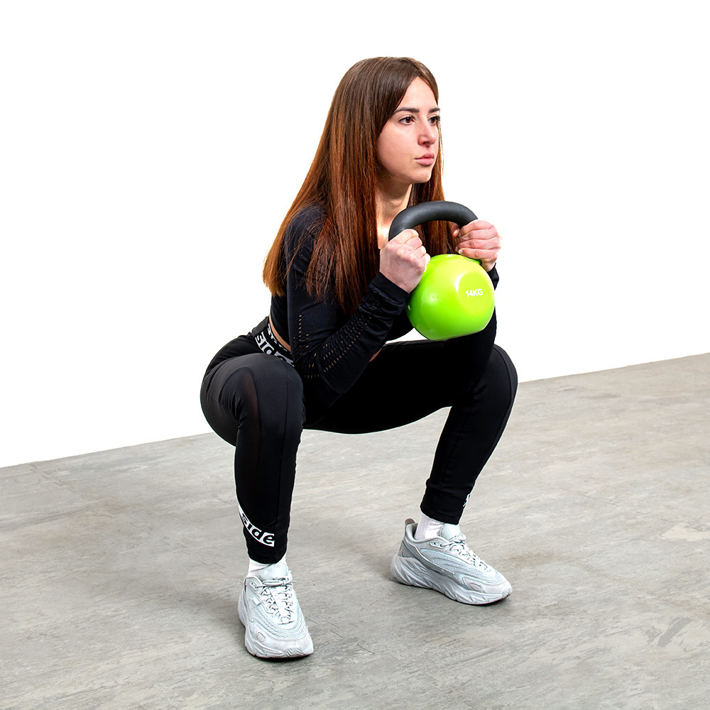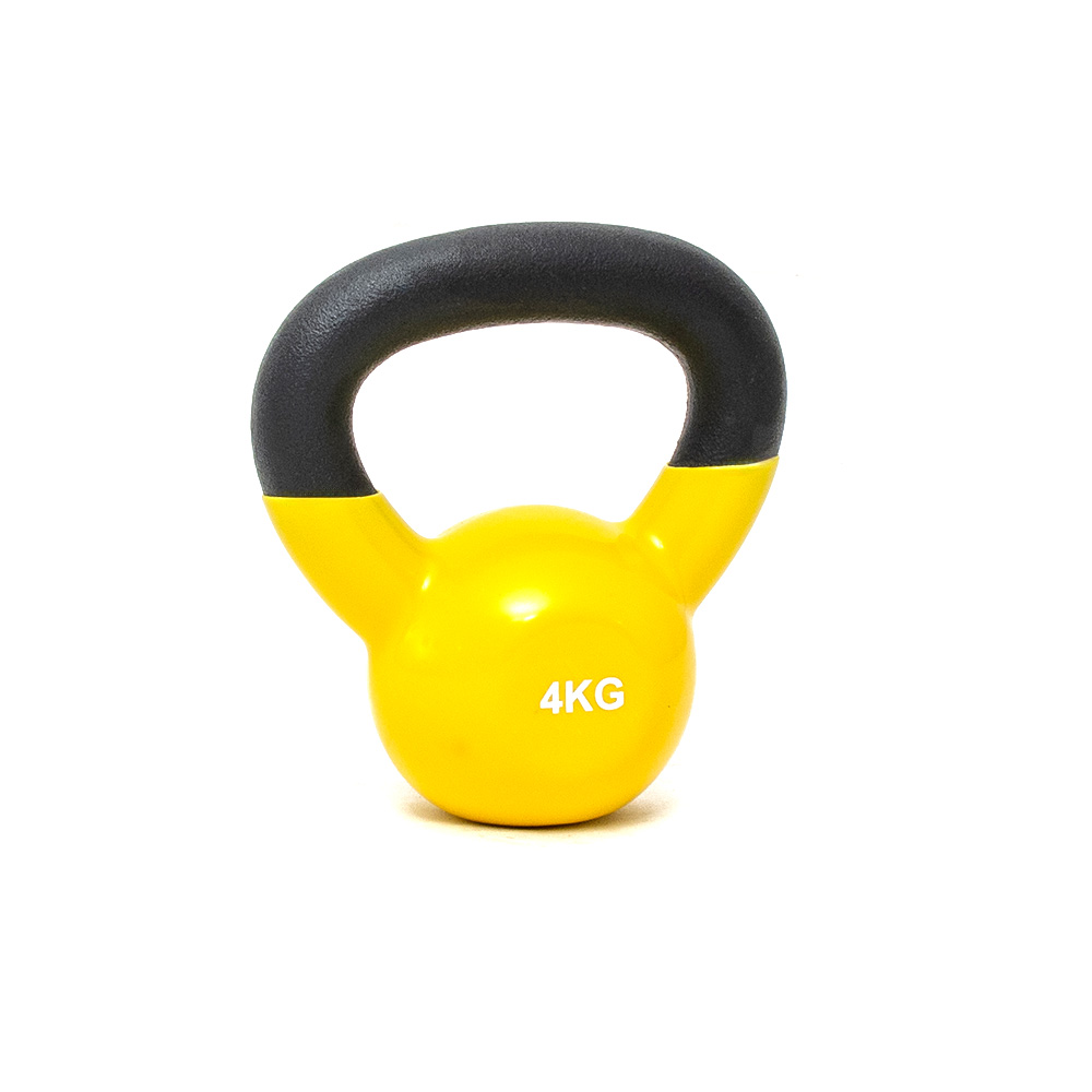 VINYL KETTLEBELLS are cast-iron weights with an unmistakable “cannonball handle” shape, covered in vinyl. They can be used for many exercises to improve strength, muscle tone, coordination, and endurance. The peculiarity of this tool is the unbalance produced by its off-center load, which makes the exercise much more intense. The generous wide opening handle provides ample space for your hands, a comfortable grip, and the flat-bottom prevents the kettlebell from rocking. The vinyl coat helps to protect the floor and reduce noise. The peculiarity of the workout with a KETTLEBELL is aimed both at training specific muscular districts and the whole body. Training with a KETTLEBELL is part of the functional training, influencing future trends in athletic preparation and fitness. Color-coded kettlebells make it easier for users to distinguish among different weights.
