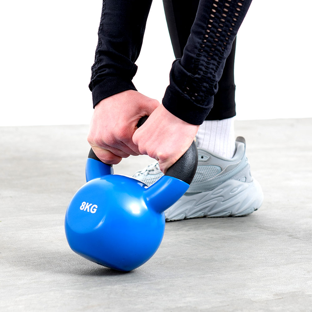The VINYL KETTLEBELL set is available in sizes from 4Kg to 12Kg – in 2Kg increments
