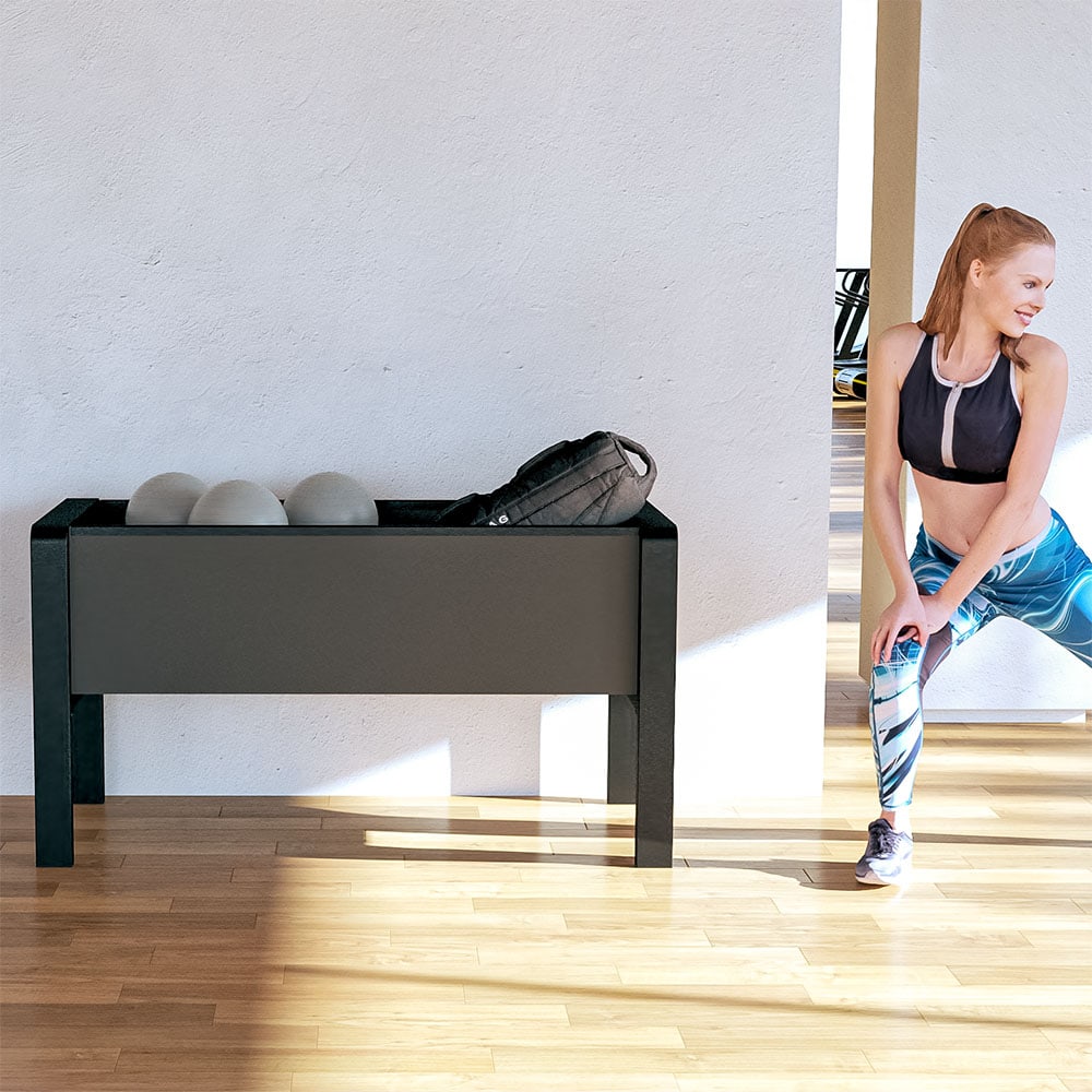The Box Storage is a multi-purpose storage rack composed of a low height box (76 cm), so as to increase accessibility. It offers the possibility of containing up to 300 Kg of various equipment (eg Kettlebells, Medicine balls, Flow Bags, Flying, mats, etc.).