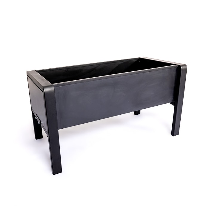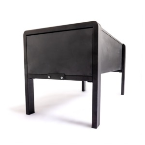 The Box is composed of a sturdy metal frame, colored with matt black powder paint, and with wooden walls and base as a finish.