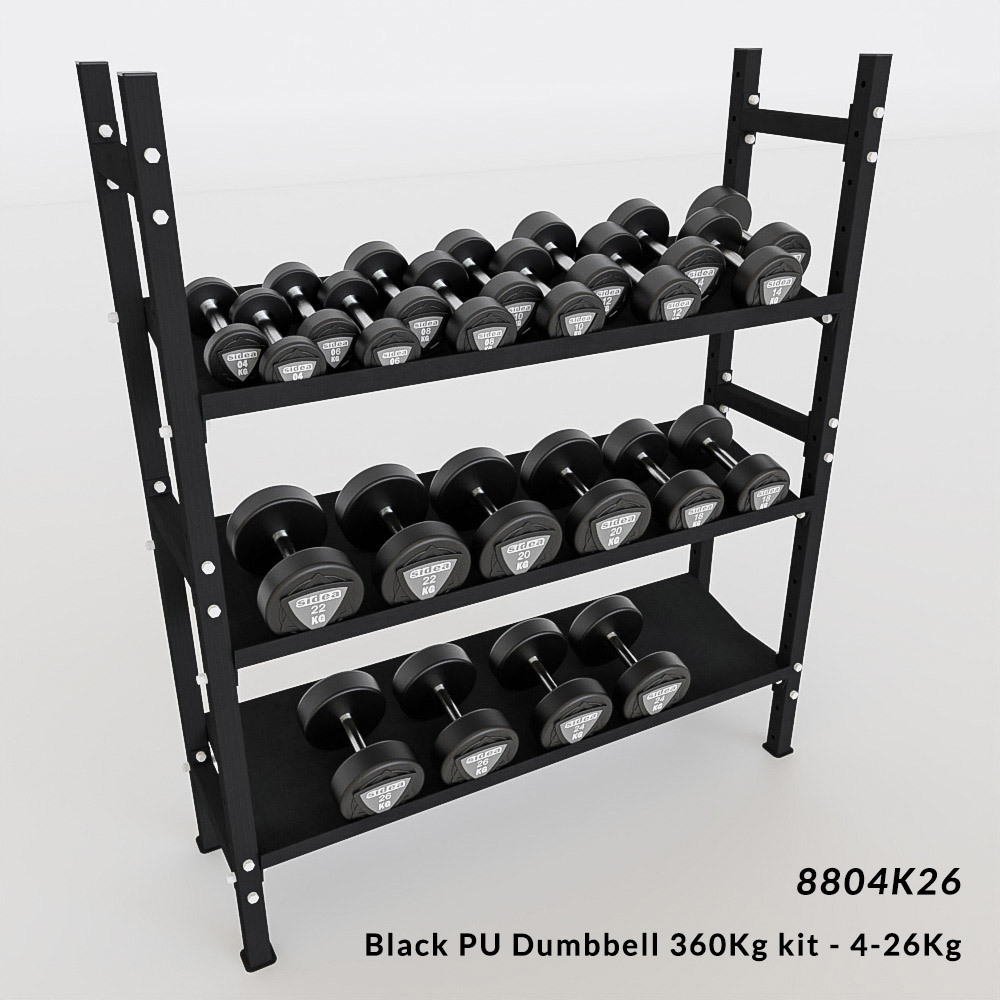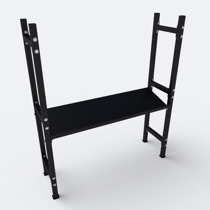 Inclined, rubberized textured shelf useful for storing heavy tools, such as dumbbells. The inclination makes its load and unloading easier. Its 40 mm-high edge prevents the tools from falling from the storage while allowing an easy placement.