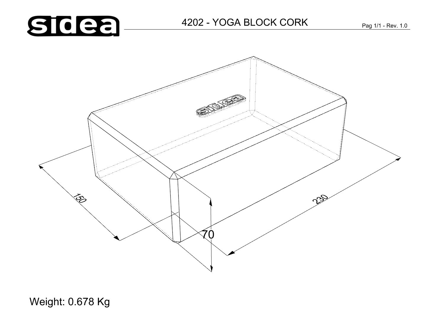 Cork version of the traditional yoga block. Useful in many applications such as support and grip for free body gymnastics exercises, improve the body’s alignment, prevents injuries, and alleviates strain. Thanks to its manufacturing in cork, it proves to be more rigid when compared to the EVA (Ethylene Vinyl Acetate) version (code 4200). Robust, stable, very sturdy, non-deformable, never slippery.