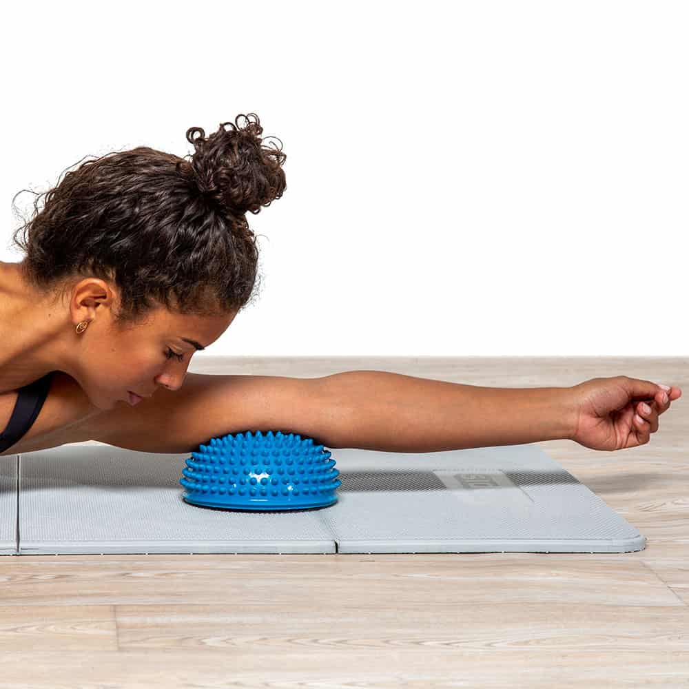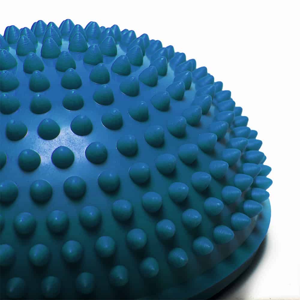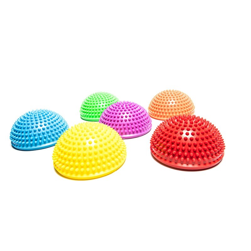 Semispheres with small dimensions (diameter 17 cm), suitable for the execution of rehabilitation or postural education exercises. The Bump Stimulating Balance Pots are useful both as small unstable bases both as stimulation elements and markers. The surface, deformable and covered with bumps, facilitates a destabilizing action and intense underfoot stimulation.
