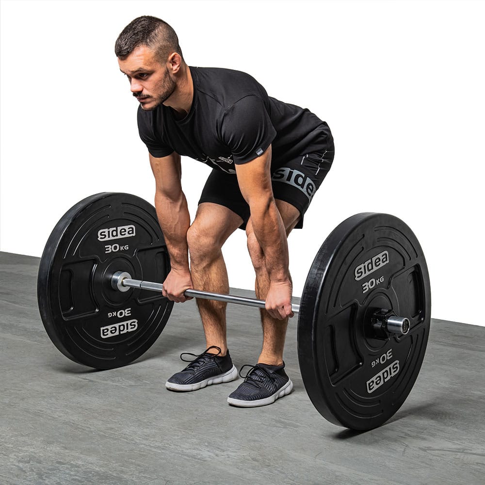 9040 / 30W Rubber Wagon Wheel with 9014 Compact Barbell and 9016/1 Collars. The deadlift set with giant 66 cm diameter bumpers is the other basic tool of the method. The lifts from the ground represent not only a fundamental multi-joint training dedicated to strength, but, mainly involving the posterior chain, they complete the training of the muscular system involved in stabilizing the knee. In alpine skiing, the knee joint undergoes very high tensions, which can be counteracted through specific preparation capable of guaranteeing strength and balance between the muscles involved.