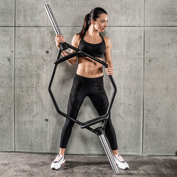 Its shape facilitates the athlete in maintaining stability with considerable advantages in terms of safety. In particular, the possibility to grasp the barbell balancing the weight allows a stable distribution of the load. It is facilitating for the correct execution of exercises. This hexagonal barbell is also perfect in the absence of a supporting rack or other shelving structures. It is usually indicated for squats. This versatile tool can also offer economic advantages with budget constraints