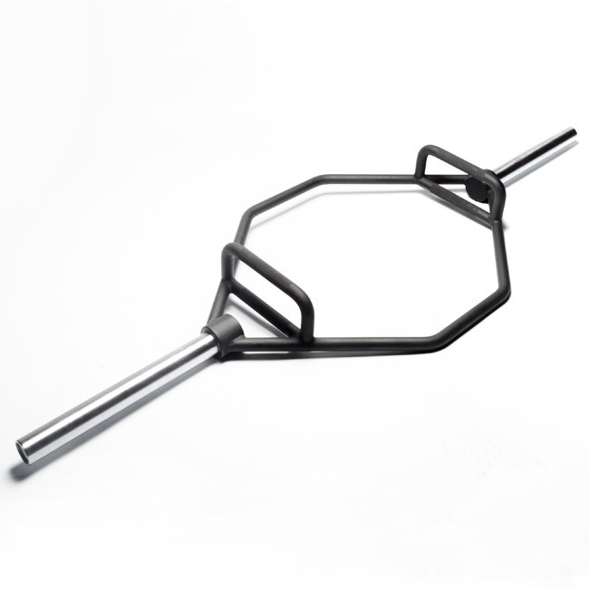 Olympic Hex Bar. With a diameter of 50 mm and a weight of 31 kg. We have revamped our already innovative Hex Bar. We have created a chromed and black painted hexagonal barbell with a knurled grip on the welded handle, ideal for squatting exercises.