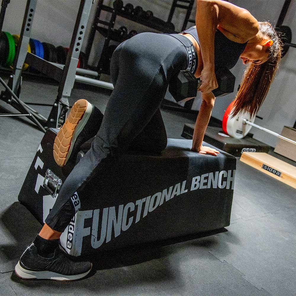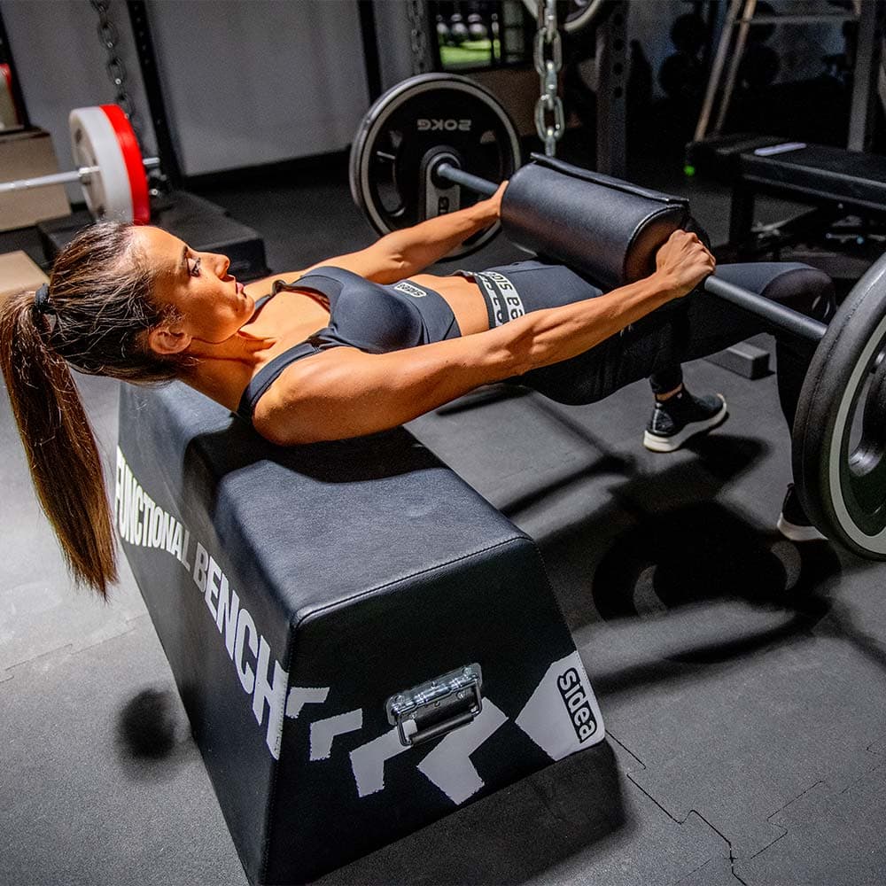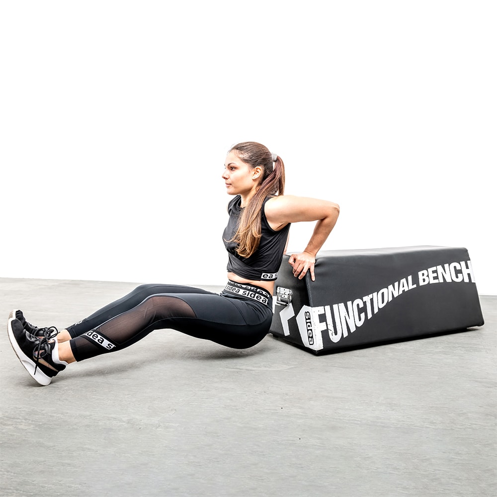 The 9024 multipurpose bench is useful for performing numerous exercises: barbell exercises, starting with the hip thrust; exercises with dumbbells, sand-bags or other weights; free-body exercises, when used as a support base for hands and feet; dynamic exercises, as the bench can be used as a step or a safety plyobox, or more simply as a soft obstacle.