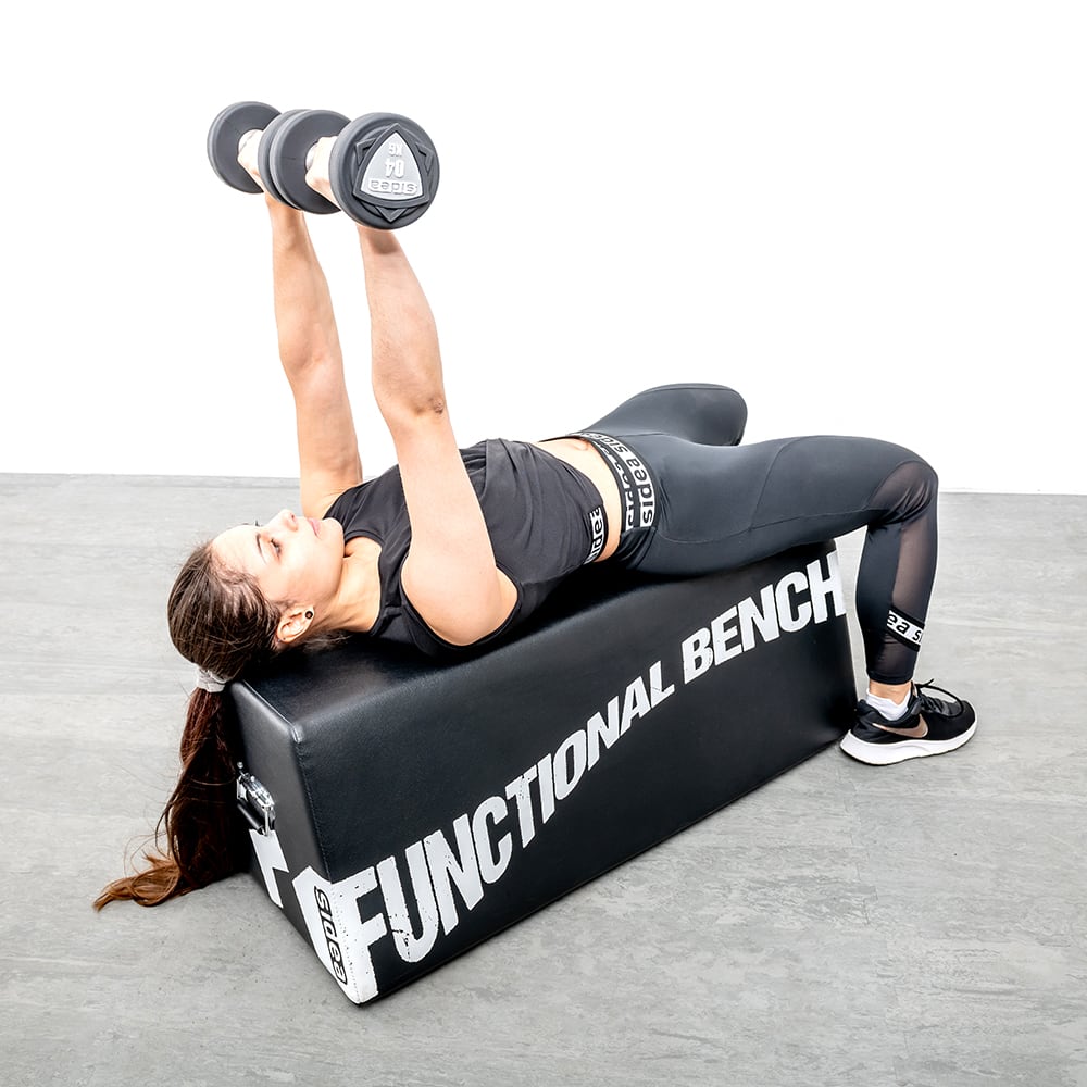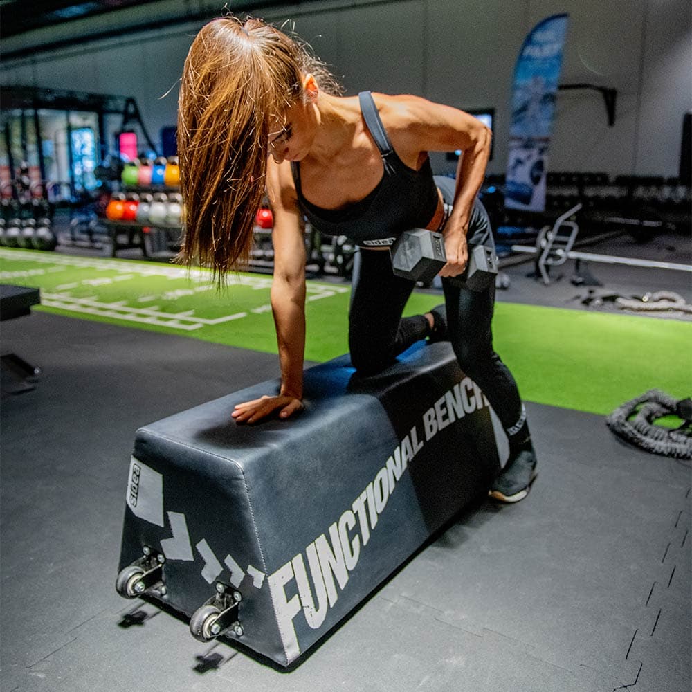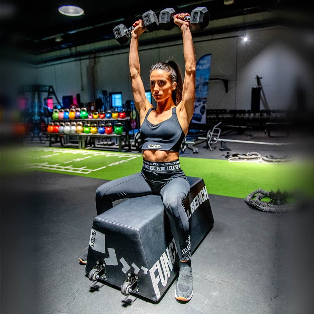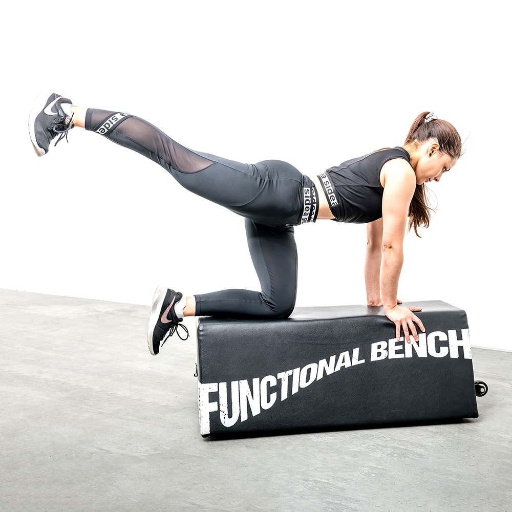 The 9024 multipurpose bench is useful for performing numerous exercises: barbell exercises, starting with the hip thrust; exercises with dumbbells, sand-bags or other weights; free-body exercises, when used as a support base for hands and feet; dynamic exercises, as the bench can be used as a step or a safety plyobox, or more simply as a soft obstacle.