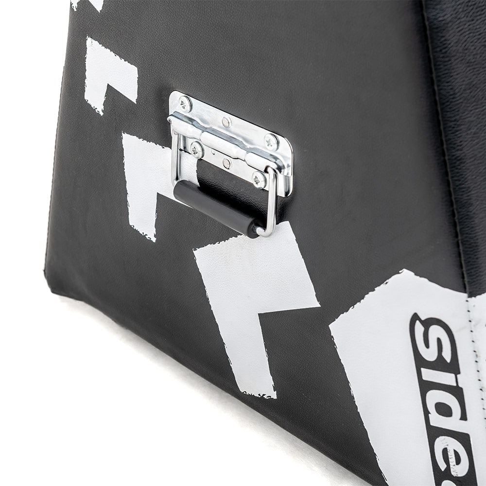 Trapezoidal flat bench constructed by a strong and stable wooden panel structure, covered with soft foam (50 mm) and PVC. The stability, in addition to the shape, is ensured by the weight, 27 kg, the size of the base, 100×50 cm, and the presence of 8 non-slip rubber feet. The wheels and a folding handle, then, ensure high ease of movement.