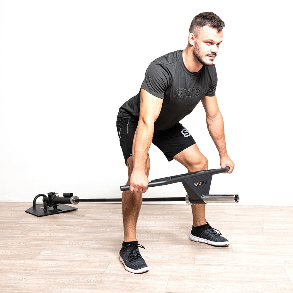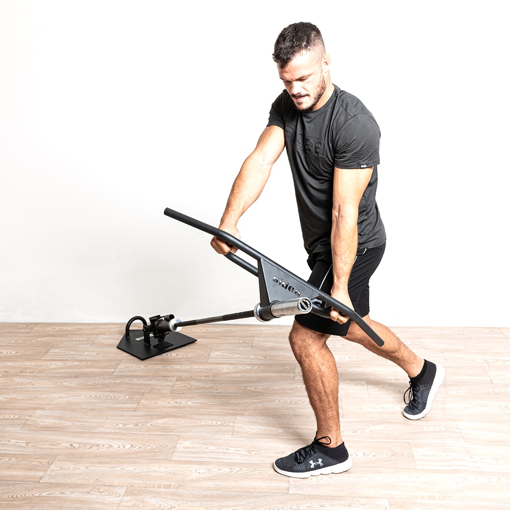 The handle, especially when combined with the Total-Core Pin code 9029, allows a barbell to be used in the manner of a T-bar for performing numerous exercises: rowing, rotation core, and all types of standing push and standing press.
