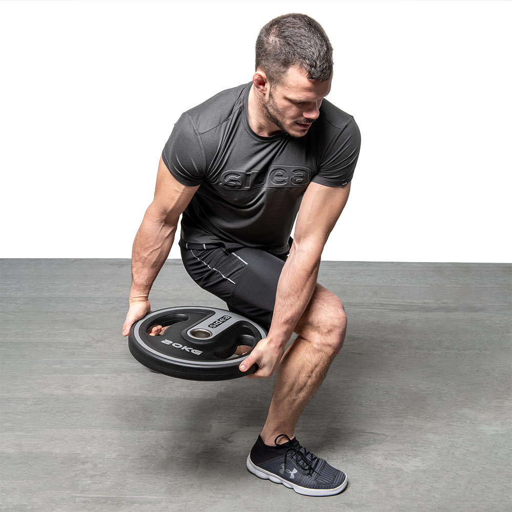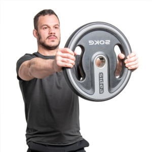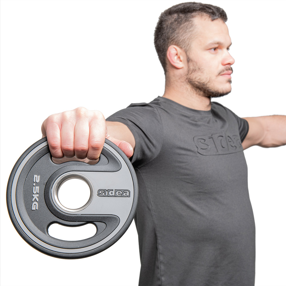 PU Plate with symmetrical handgrip. Weight plates with handles and internal rounded metal core ring for barbells with a diameter of 50 mm. The grips are comfortable and symmetrical, allowing you to use the plate also individually (without a barbell) for exercises with one or two hands.