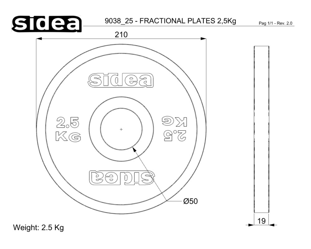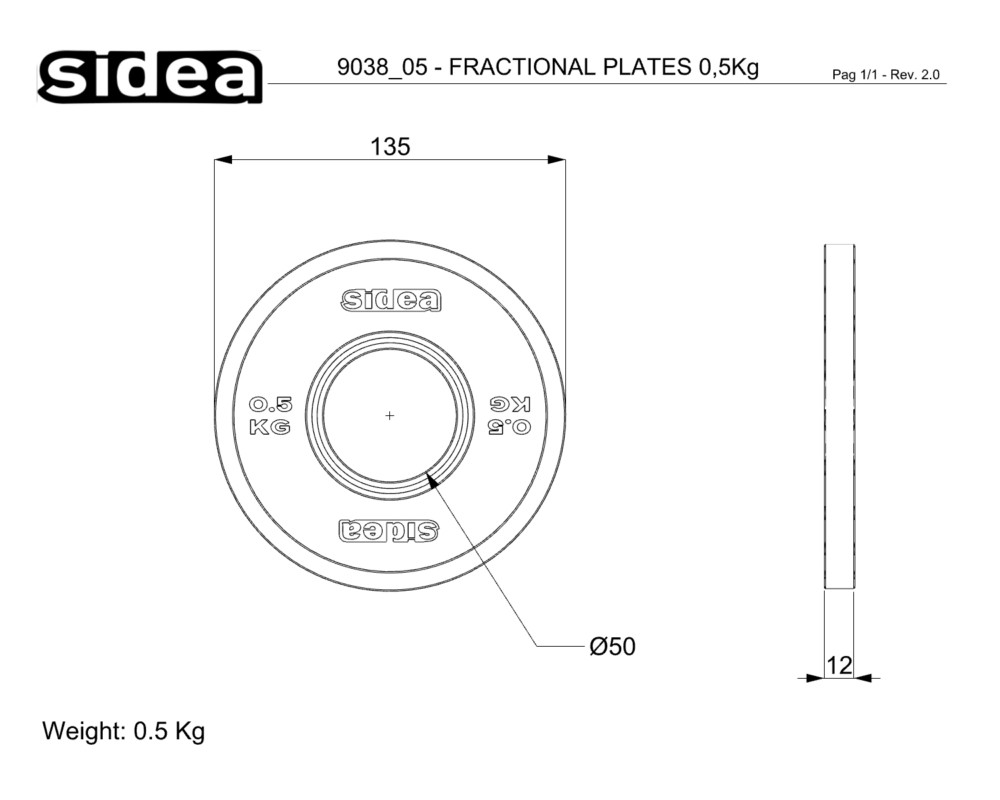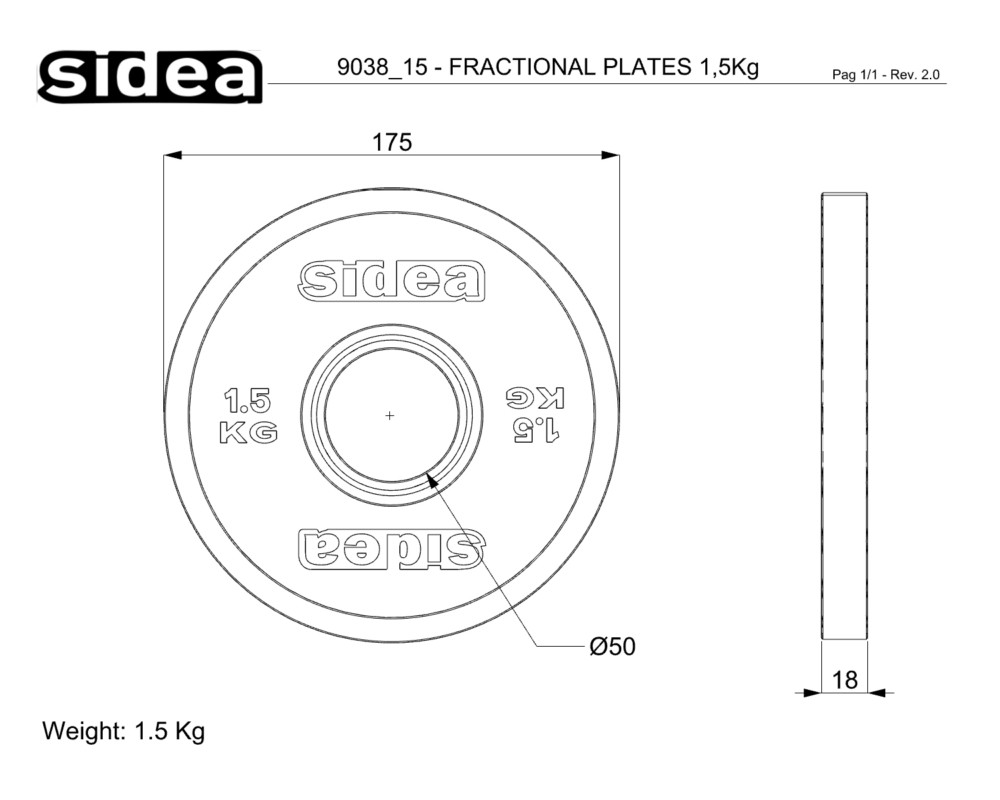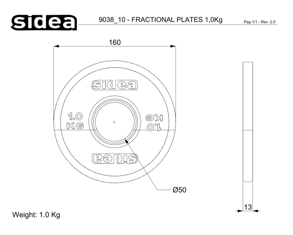 ATTENTION: the 0.125 Kg plate (code 9038/125) and the 0.250 Kg plate (code 9038/250) do not feature the FRICTION GRIP system.