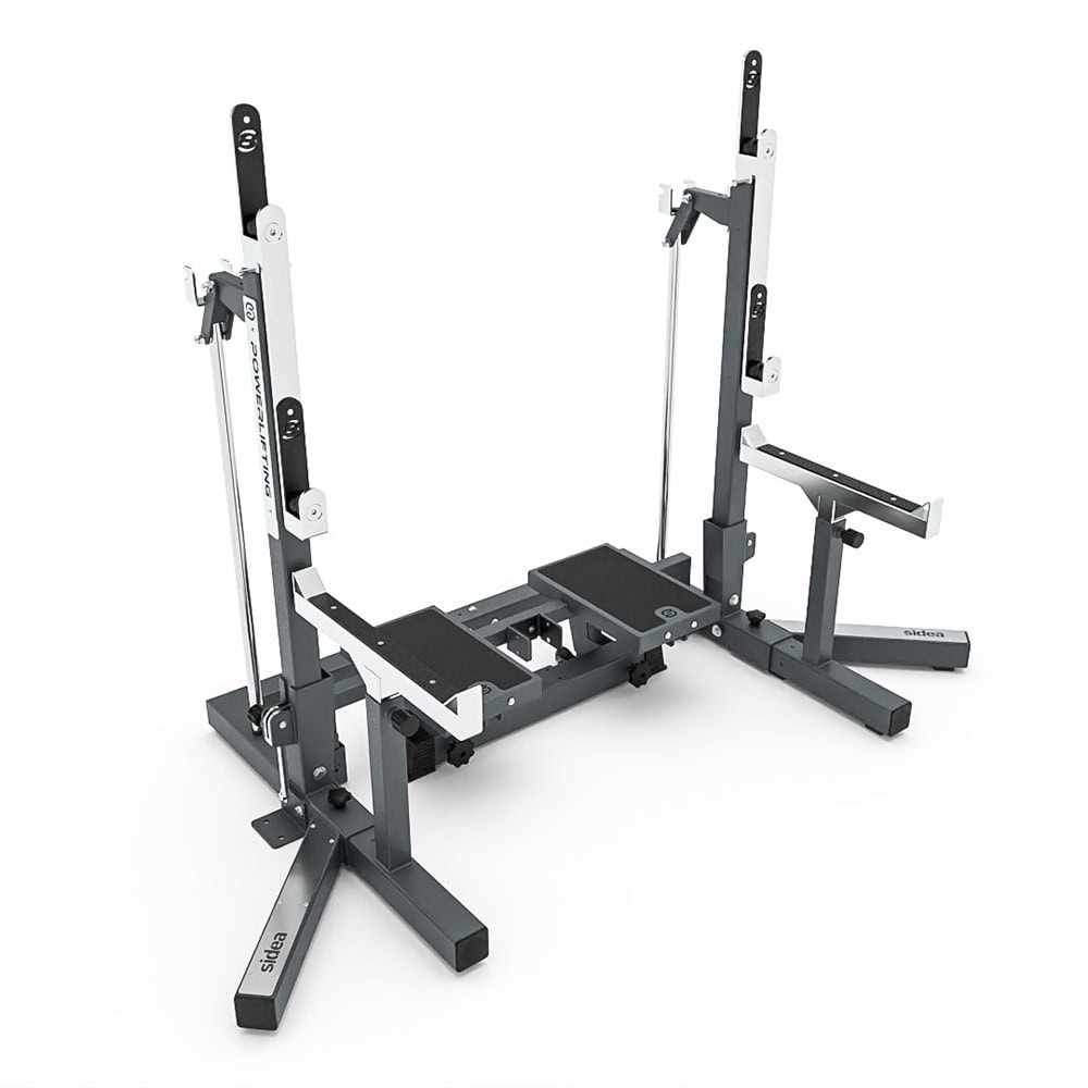 The 9045 Rack is a station specifically designed for performing two fundamental powerlifting exercises: Squat and Bench Press. Its development was guided by input from athletes and gym owners specialized in weightlifting, with the goal of creating a high-quality product that is stable, durable, properly sized, and highly functional.