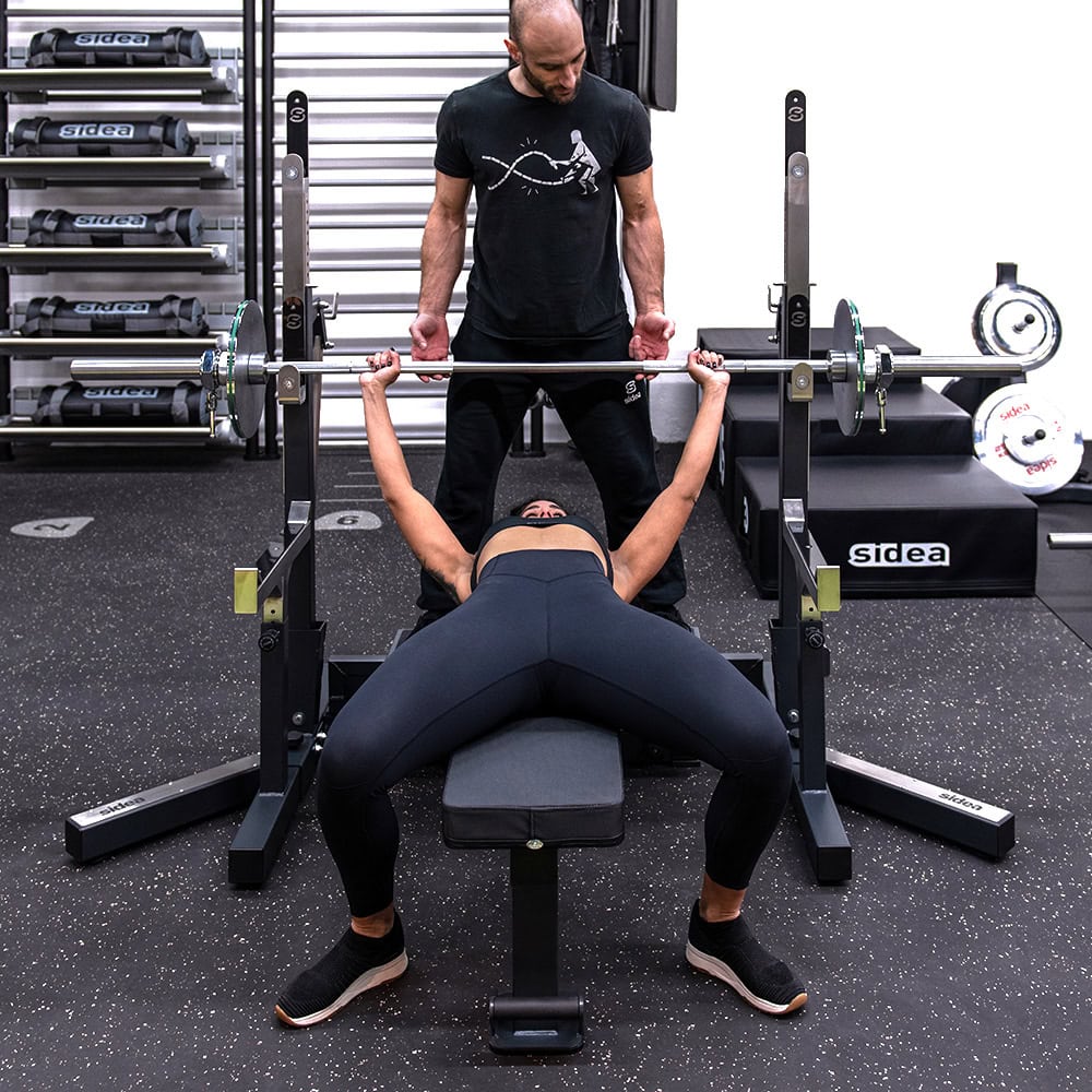 Additionally, the Flat Bench 9020 can be equipped with the optional ANTI-SLIP R9020A monoblock padding. This padding features a high-grip coating (also known as “grippy”) that facilitates the arched bench press technique.