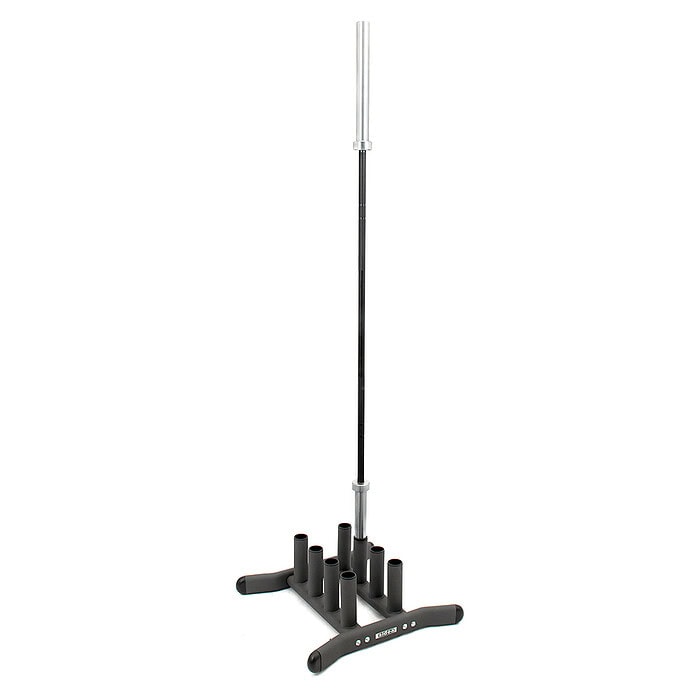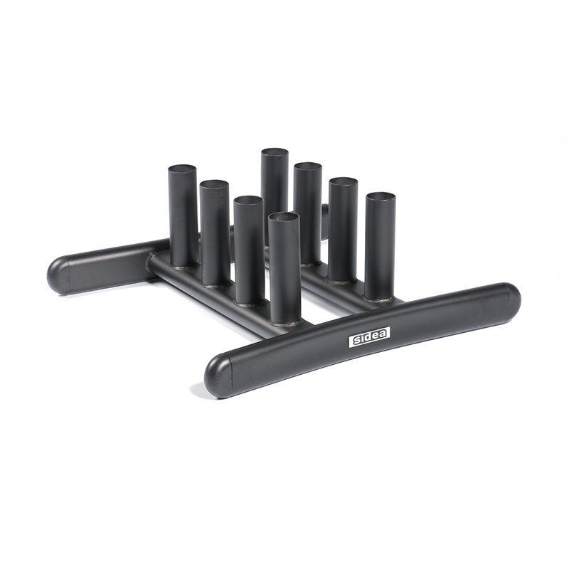Designed for barbells with 50 mm loadable sleeves. This rack, produced with an oval and round tubular structure, allows you to store 8 barbells in a vertical position conveniently. Painted in black.
