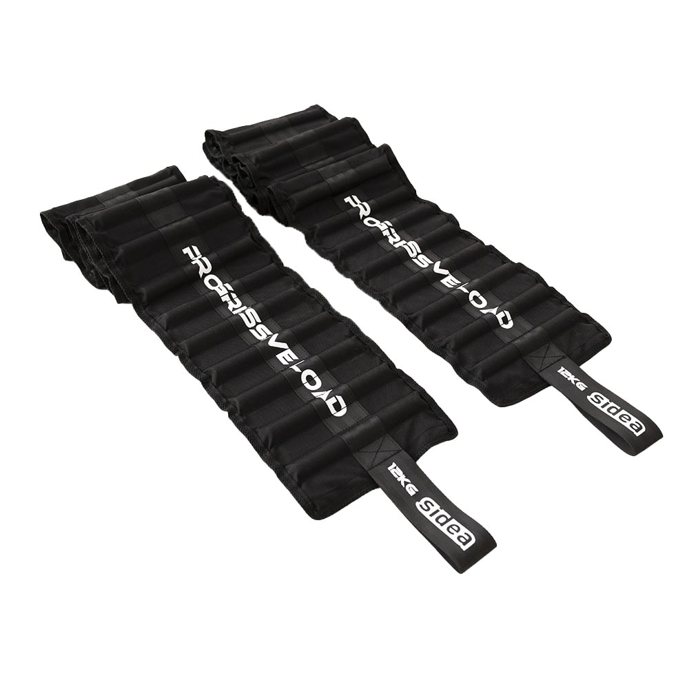 Pair of strong strips made of reinforced nylon, 155 cm long, with 24 cylindrical weights of 0,5 kg, for a total of 12 kg per strip. The tool was developed to eliminate the irritating noise and discomfort, typical of metal chains for lifting with progressive overload.