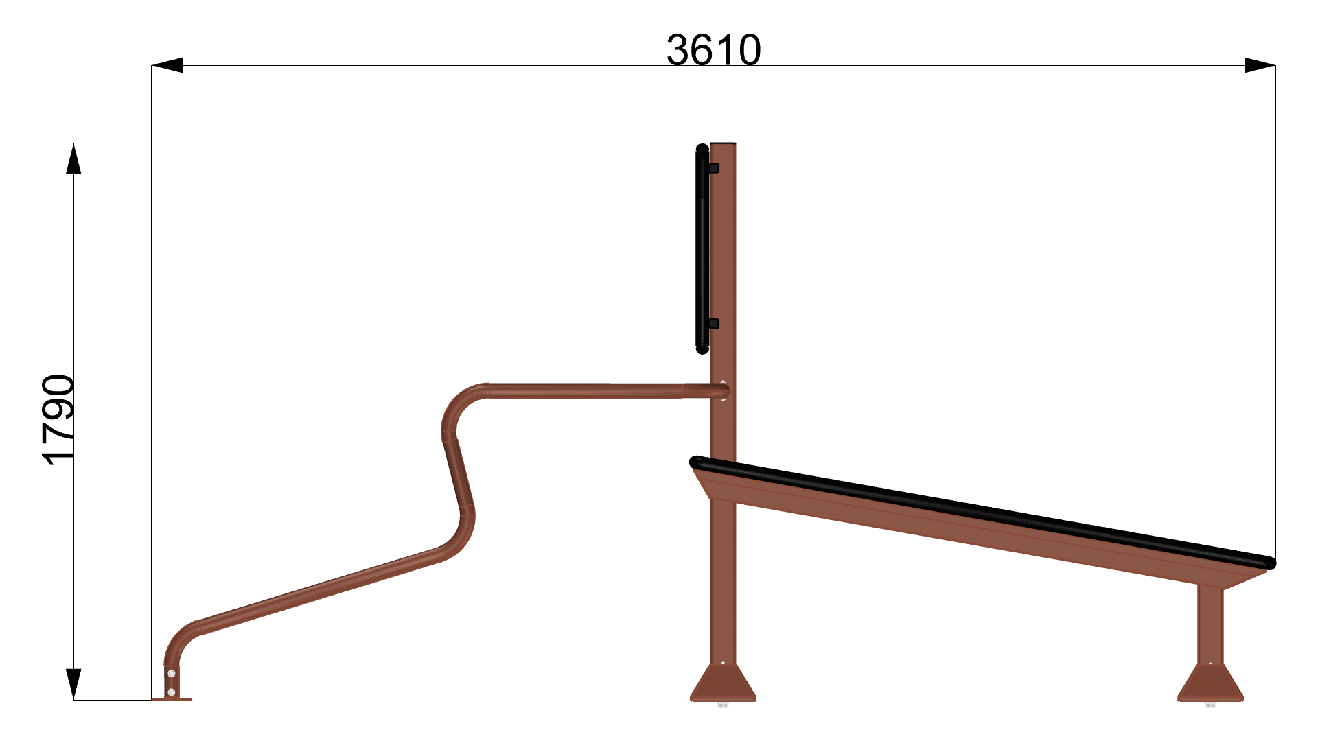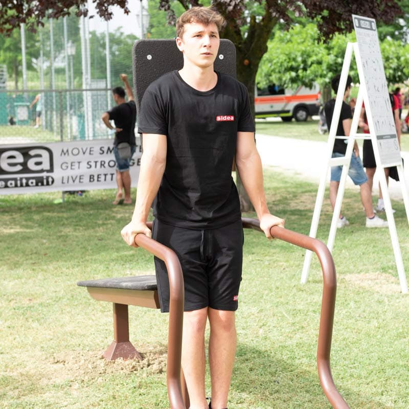The Public Island Bench-Dips code 9085/2 is a Public Island Rack accessory, designed to provide outdoor training solutions suitable for public areas, such as parks or beaches and that includes two modules: on one side the Bench and on the other two bars for Dips (diameter 48 mm). Just like all the products within the Public Island range, the Bench-Dips code 9085/2 is designed in accordance to the EN 16630 standards, aimed at ensuring the safety of those carrying out physical activity outdoors while using freely accessible equipment.
