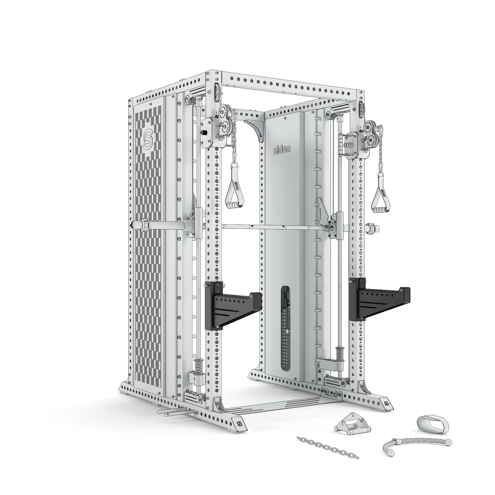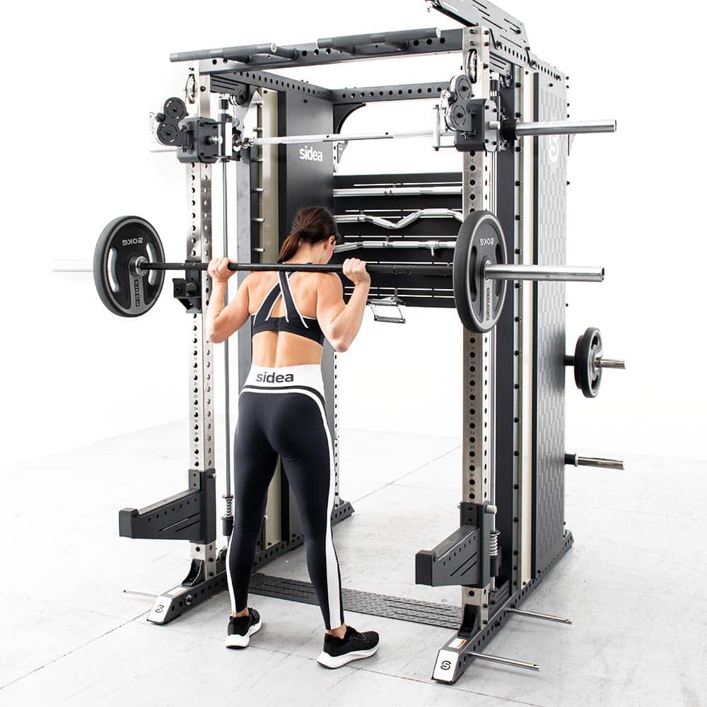 With the addition of the 9088/9 Safety Spotters and implicitly the 9088/8 Roller J-Hooks, the 9088 Rack supports free barbell use, complementing the integrated Smith machine with full freedom of training. This all-in-one combination is ideal for both guided and free exercises: Squat, Deadlift, Pull-up, Military Press, Row, and isolation movements—perfect for personal training studios and pro-grade home gyms.
