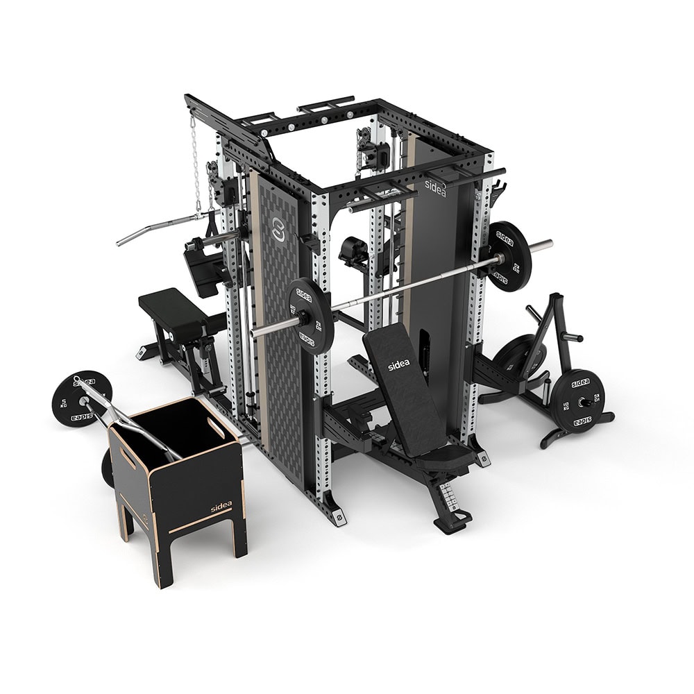- Smith Machine (Multipower) with internal counterweight and safety systems