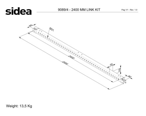 The 9089/3 2400 Link Kit is a 2400 mm long splice bar designed to connect two 9089A Weight Stack Units, allowing a larger configuration to be created, turning the Cable Station into a Crossover Machine, as is the case with the 9089K5 version.