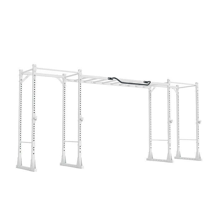 This bar has a diameter of 33 mm, a total length of 1200 mm and is ideal for pull-ups. The bar is also useful for attaching elastic bands, e.g. Power Loops Cod. 0513-0518 and suspension training equipment, e.g. Flying Cod. 2092, or rings, e.g. Ring Cod. 2088, 2088/1, 2089. New model with folded bar and horizontally welded attachment plates so that the 9095/21A Horizontal Lat Bar can be attached to the 9095/4 2780 H. Ladder or to the 9095/5 2220 H. Ladder.