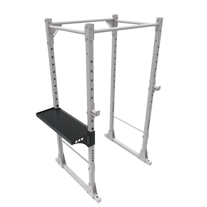 The Tray Storage Rack Side can be installed on the short lateral side of the Power Cage Rack.
