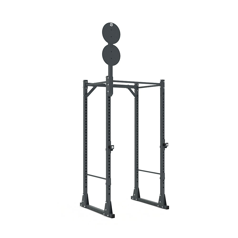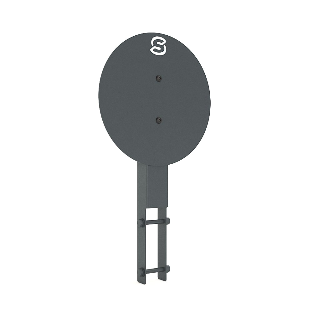 The Paddle High is an optional component of the Power Cage Rack and the Rack Station. With a diameter of 350mm, it can be bolted directly on every free upright of the Paddle (code 9095/2) at the height of 3170mm (at its highest point). The standard color is micaceous dark grey. Paddle features solid steel construction. Includes all necessary fixing/bolts. The Paddle High is an excellent way to add a final touch to your Power Cage Rack. It facilitates your training while adding accuracy to your workout.