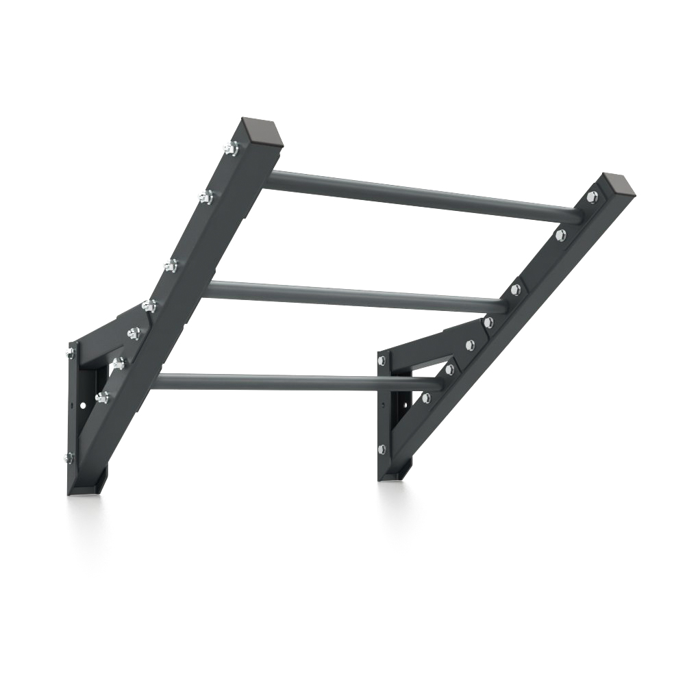 Once installed on the Rack, the PU Bar reaches a height of 2500 mm from the floor at the highest peg position, 2200mm at the lowest peg and a maximum distance from the Rack of 810 mm. This solution allows having a good compromise between the overall dimensions of the structure and the presence of a high bar, suitable for pull-ups or for attaching elastics (like Power Loop, codes 0513-0518) or suspension training tools (like Flying, code 2092, or Rings, codes 2088, 2088/1 and 2089).