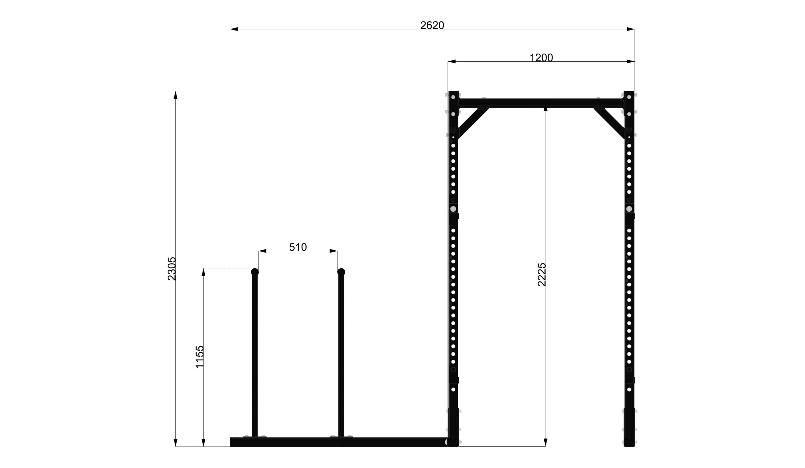Power Cage Rack dimensions: 1200 × 1110 mm