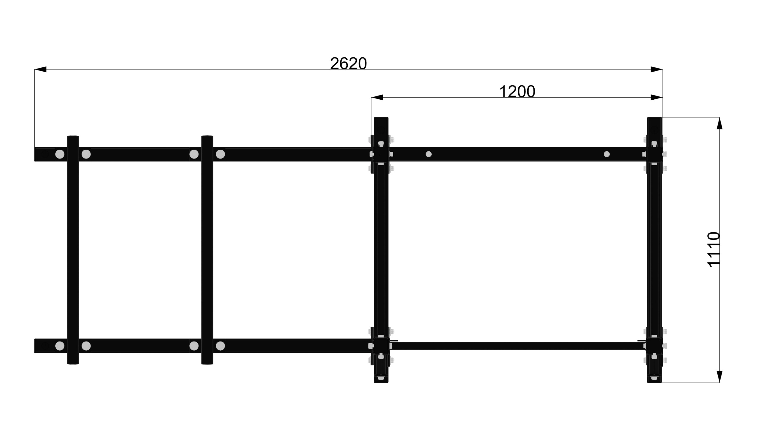 The Parallel have a 50 mm diameter socket, are 955 mm long, 1160 mm high and spaced 510 mm apart (560 mm from the centre of each bar).