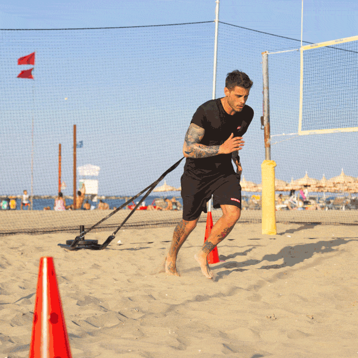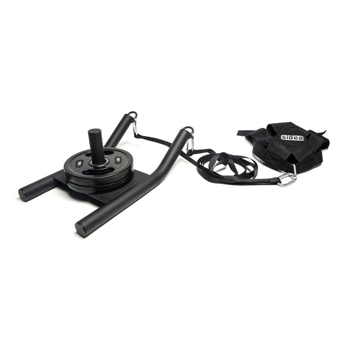 Slide for traction exercises loadable through weight plates with a diameter of 50 mm. The Speed Sled has been designed for athletes who wish to perform traction exercises and resistance running.