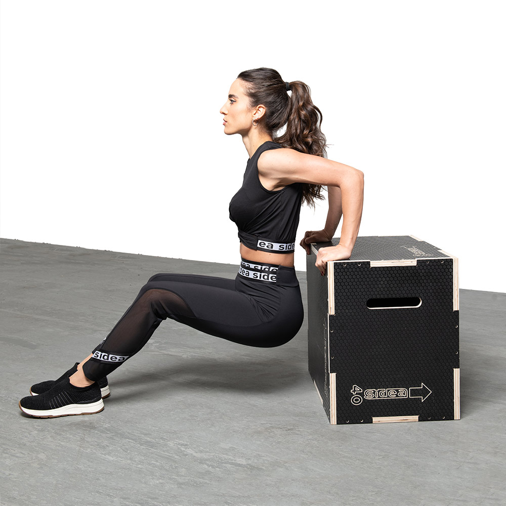 The Wooden Plyobox code 9111 can be positioned to work at three different heights: 40, 50, 60 cm. Ideal heights for an unpadded plyobox. The sturdy structure, the heavy weight, the anti-slip film, the looped grips, make the tool stable and practical in positioning. However, it is recommended for use on rubberized floors.