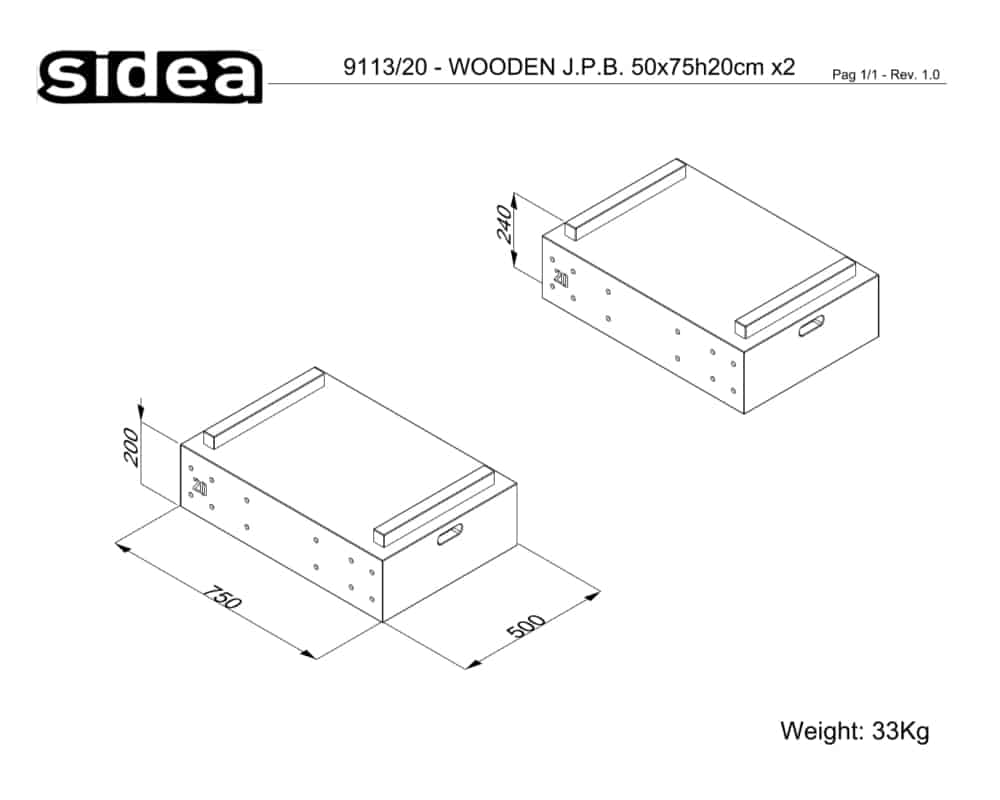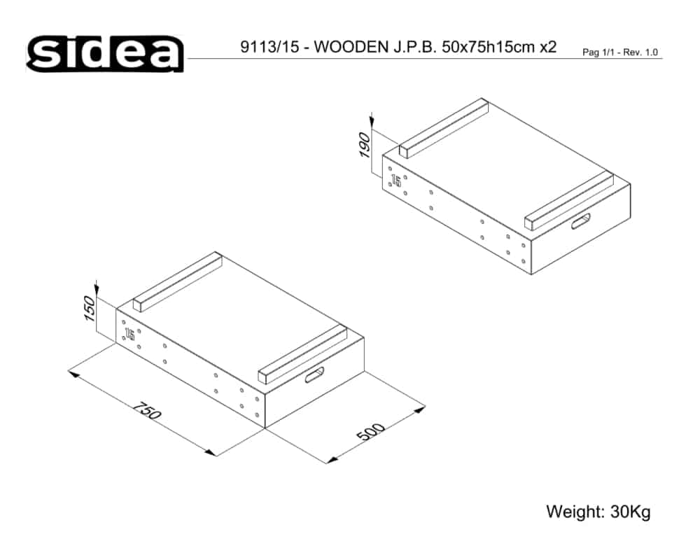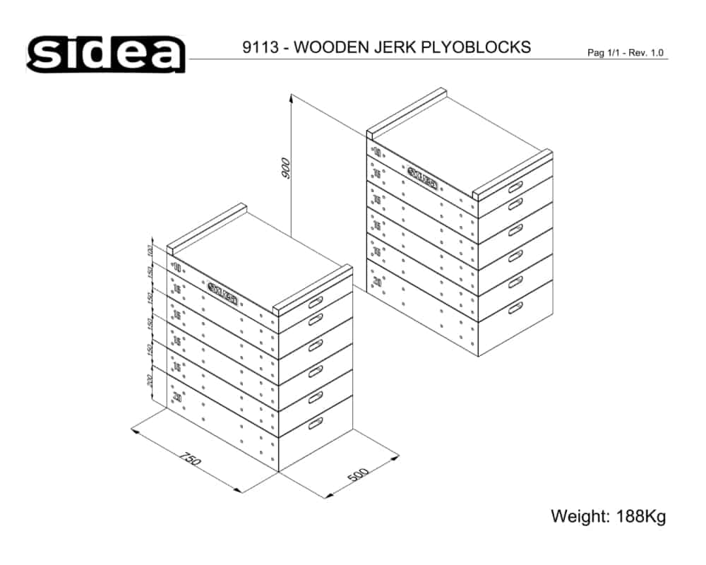 The complete set code 9113 includes 6 pairs of blocks: 1x code 9113/20 (pair of 20 cm high blocks), 4x code 9113/15 (pairs of 15 cm high blocks) and 1x code 9113/10 (pair of 10 cm high blocks with rubberized surface). The Wooden Jerk Plyoblocks set becomes a handy tool since it provides the users with many training options, aimed at the most diverse skill levels. It offers an increased degree of safety for the joints and the grip.