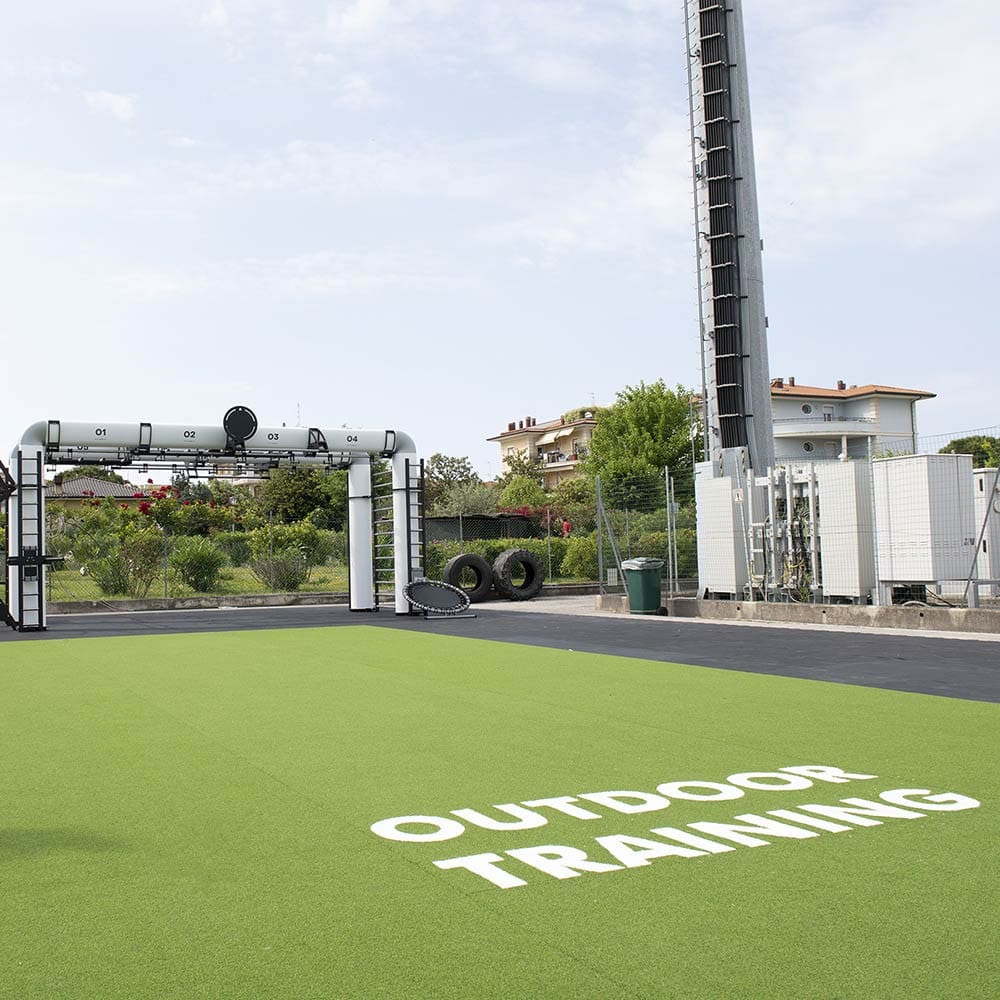 EcoGarden is recommended in contexts where training needs to be carried out without shoes or where workouts on the ground are frequent.