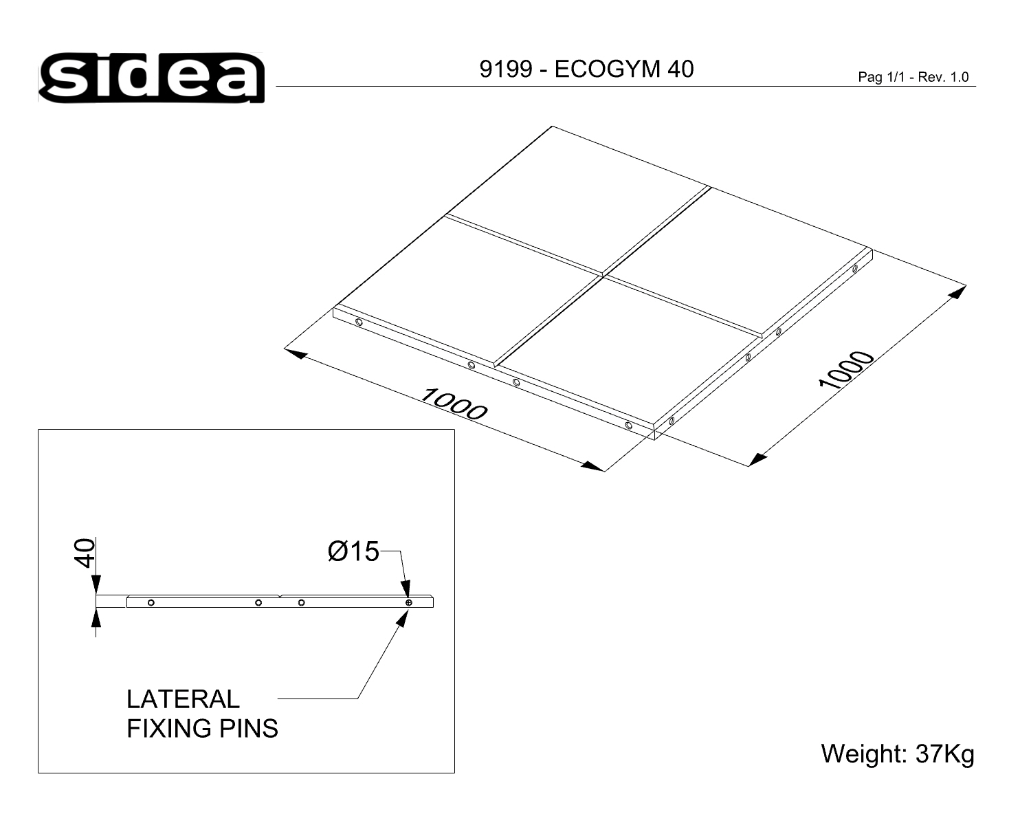 The Ecogym 40 is an anti-trauma flooring thought for outdoor public areas and produced by agglomerate of recycled rubber granules to ensure high mechanical resistance, shock absorption and high grip, even in the presence of water. The tiles, 1×1 m, thickness 40 mm, with lateral fixing pins, comply with UNI EN 1176 standard in combination with all Public Island structures.